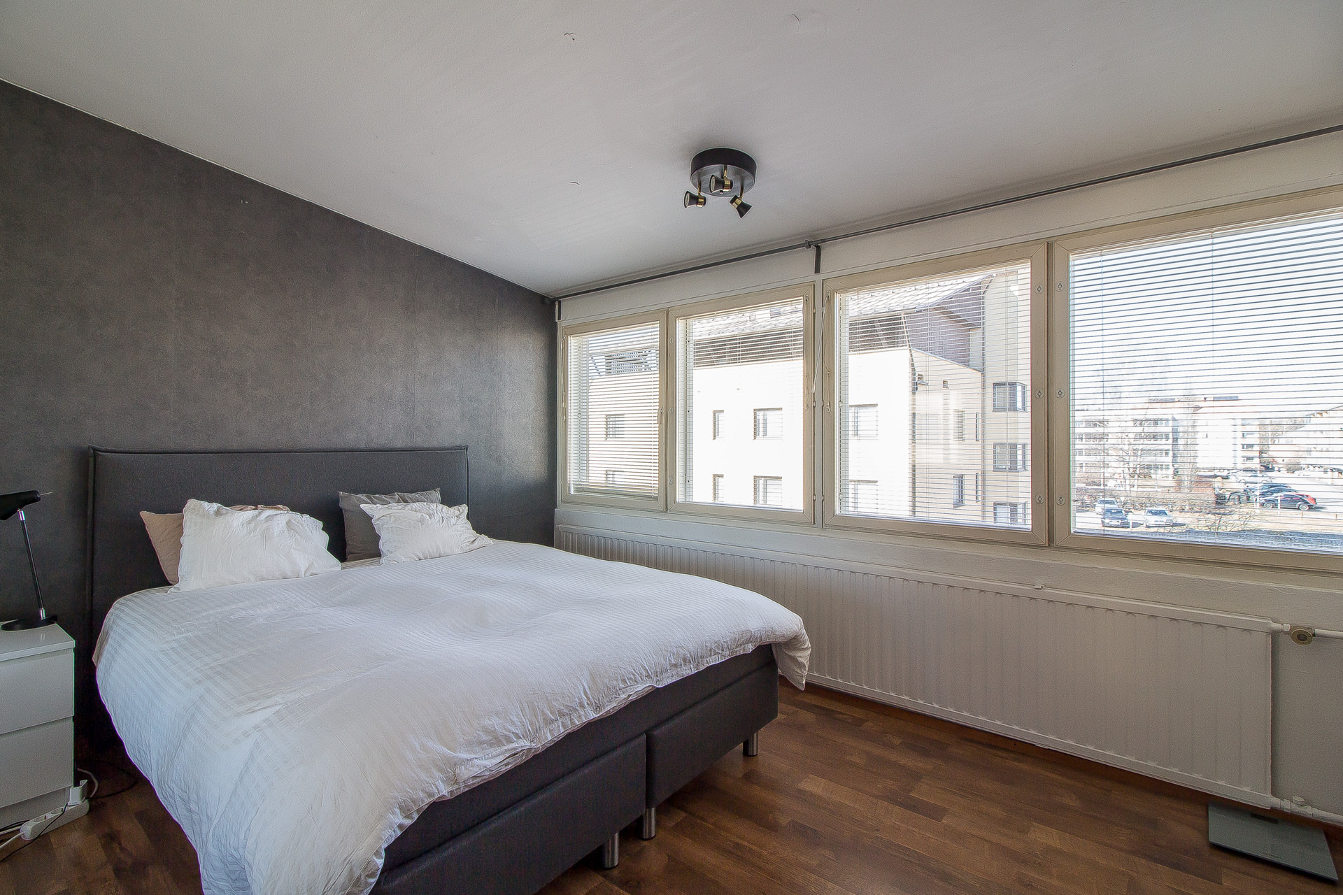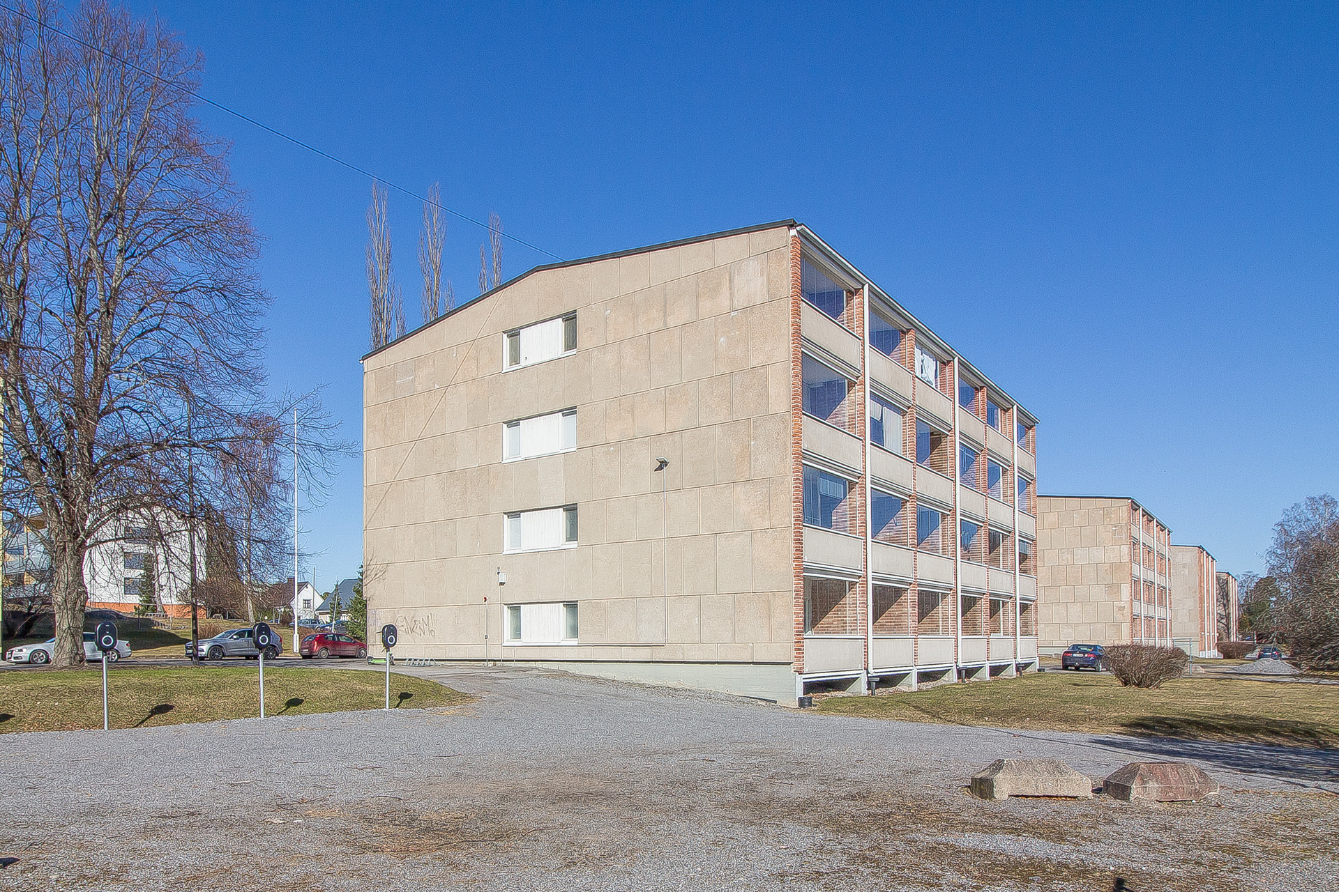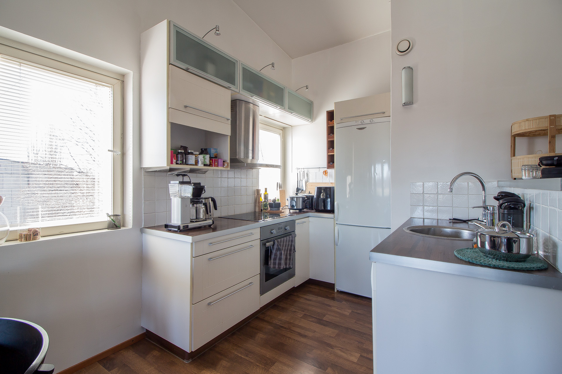 Asunnossa on viistetty sisäkatto ja korkeampi kattokorkeus. Olohuoneesta on käynti viihtyisälle lasitetulle eteläparvekkeelle.