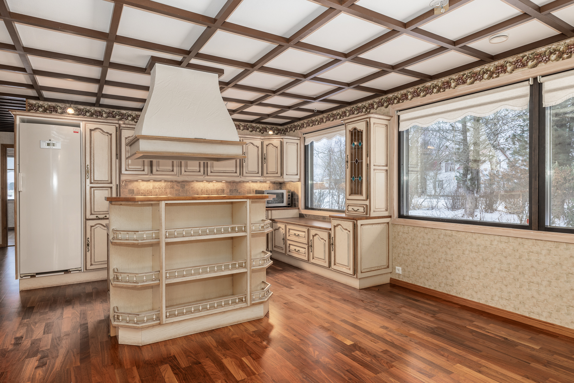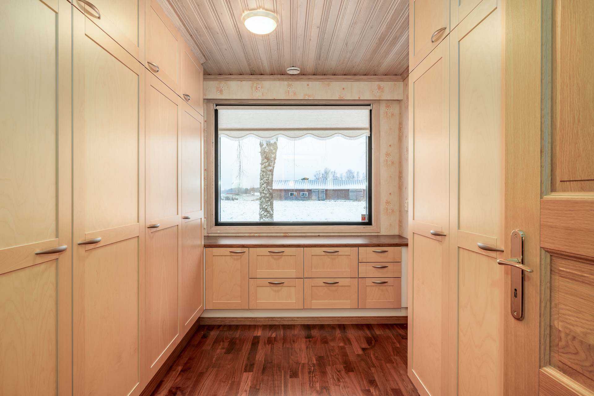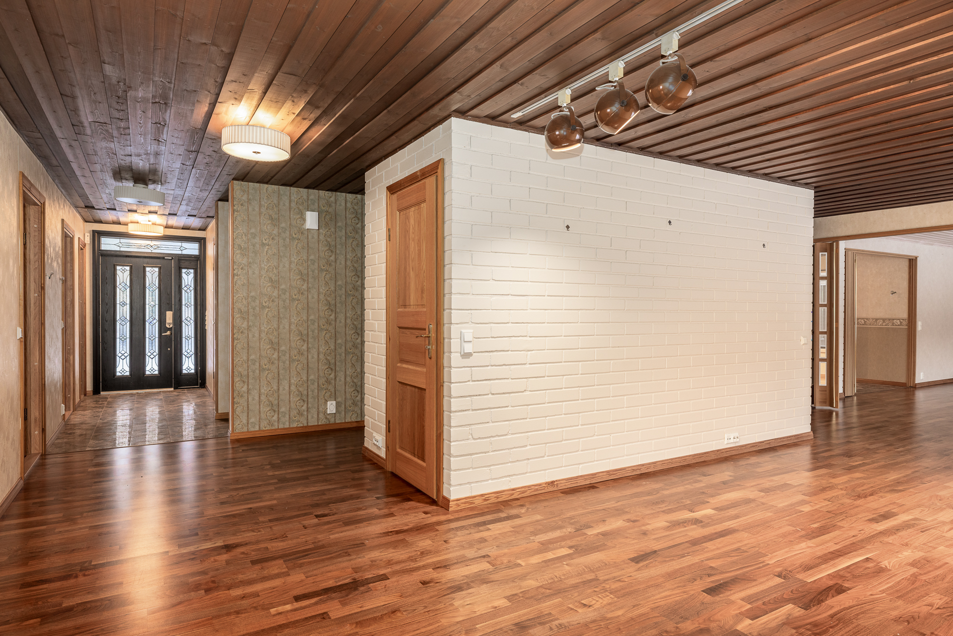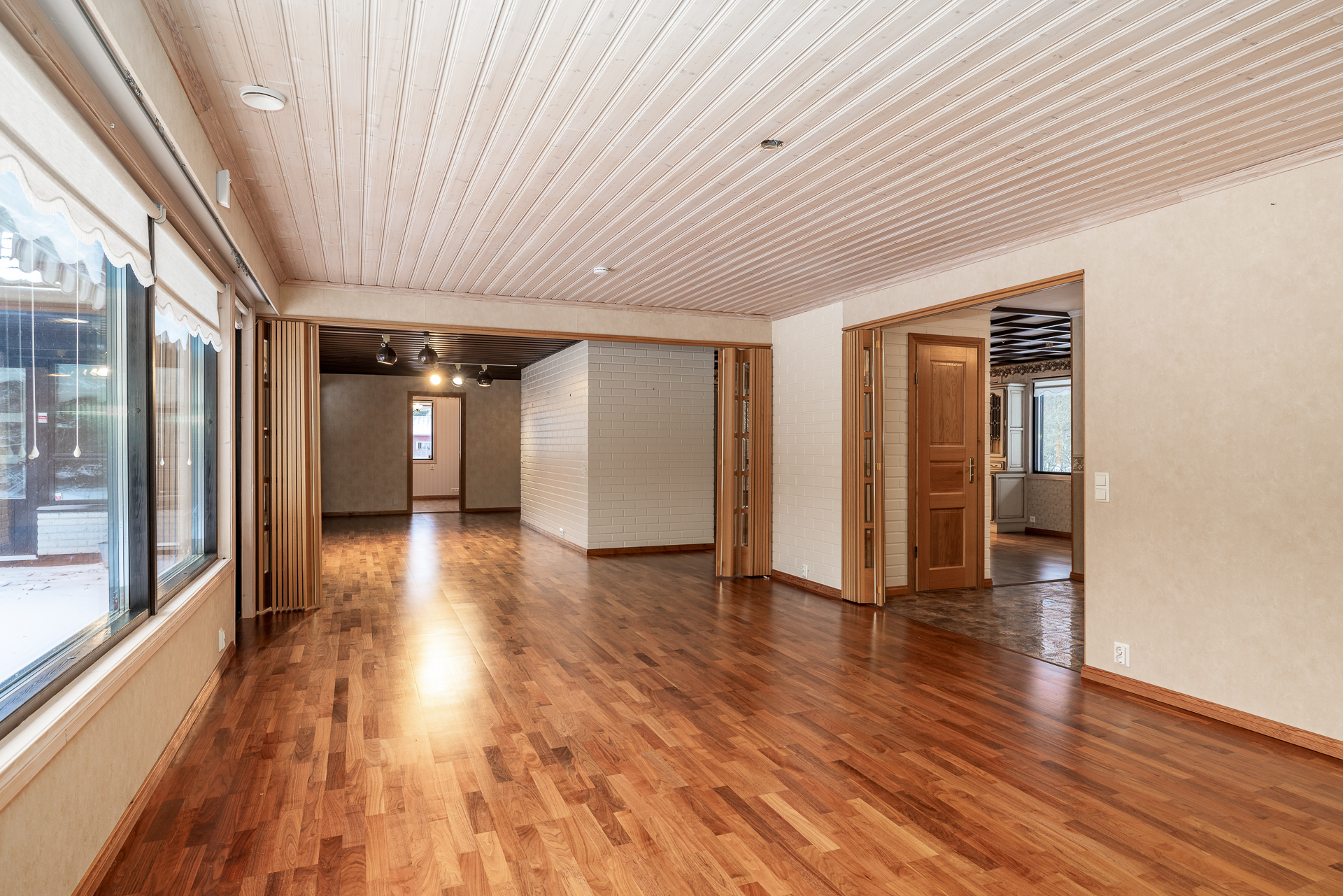Suuri talo, jossa on neljä reilunkokoista makuuhuonetta, olohuone, ruokailutila, tilava keittiö, leivinuunihuone, työhuone, kolme vaatehuonetta, kodinhoitohuone, kylpyhuone, sauna sekä kaksi erillistä wc:tä. Lisäksi taloon on rakennettu tilava käyttöullakko vuonna 2004, jolloin kattoa korotettiin ja uusittiin.