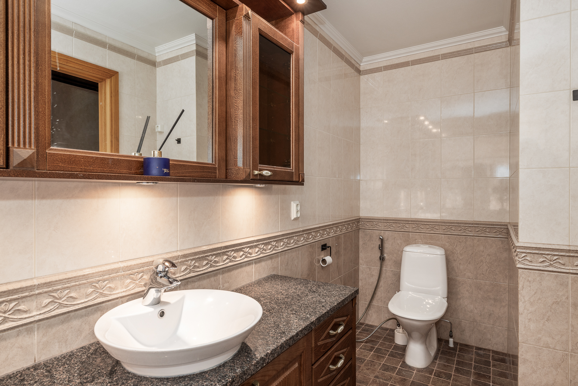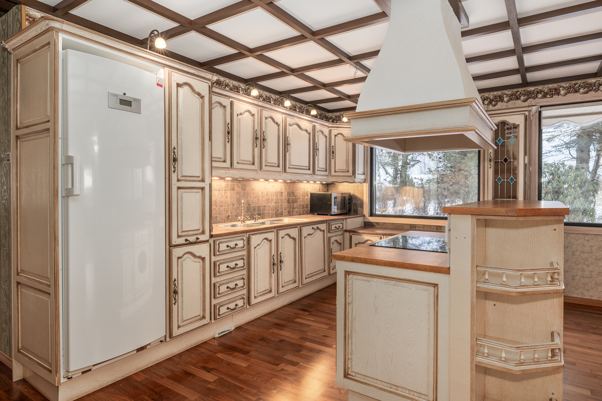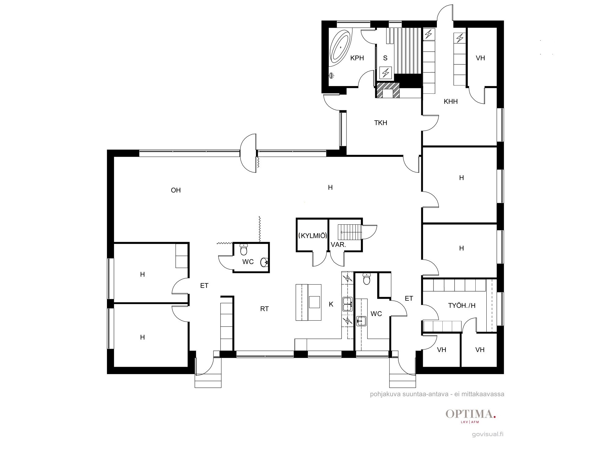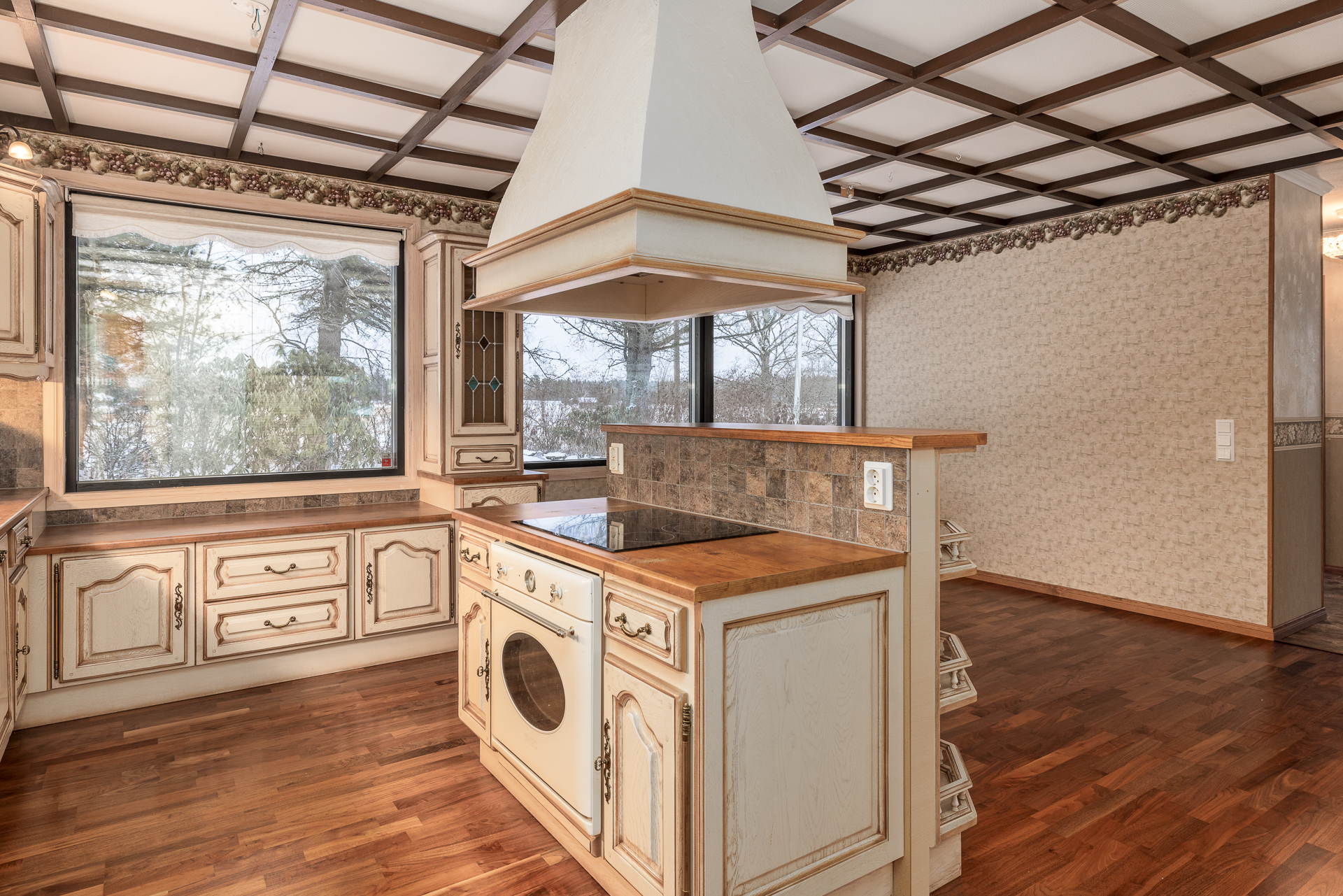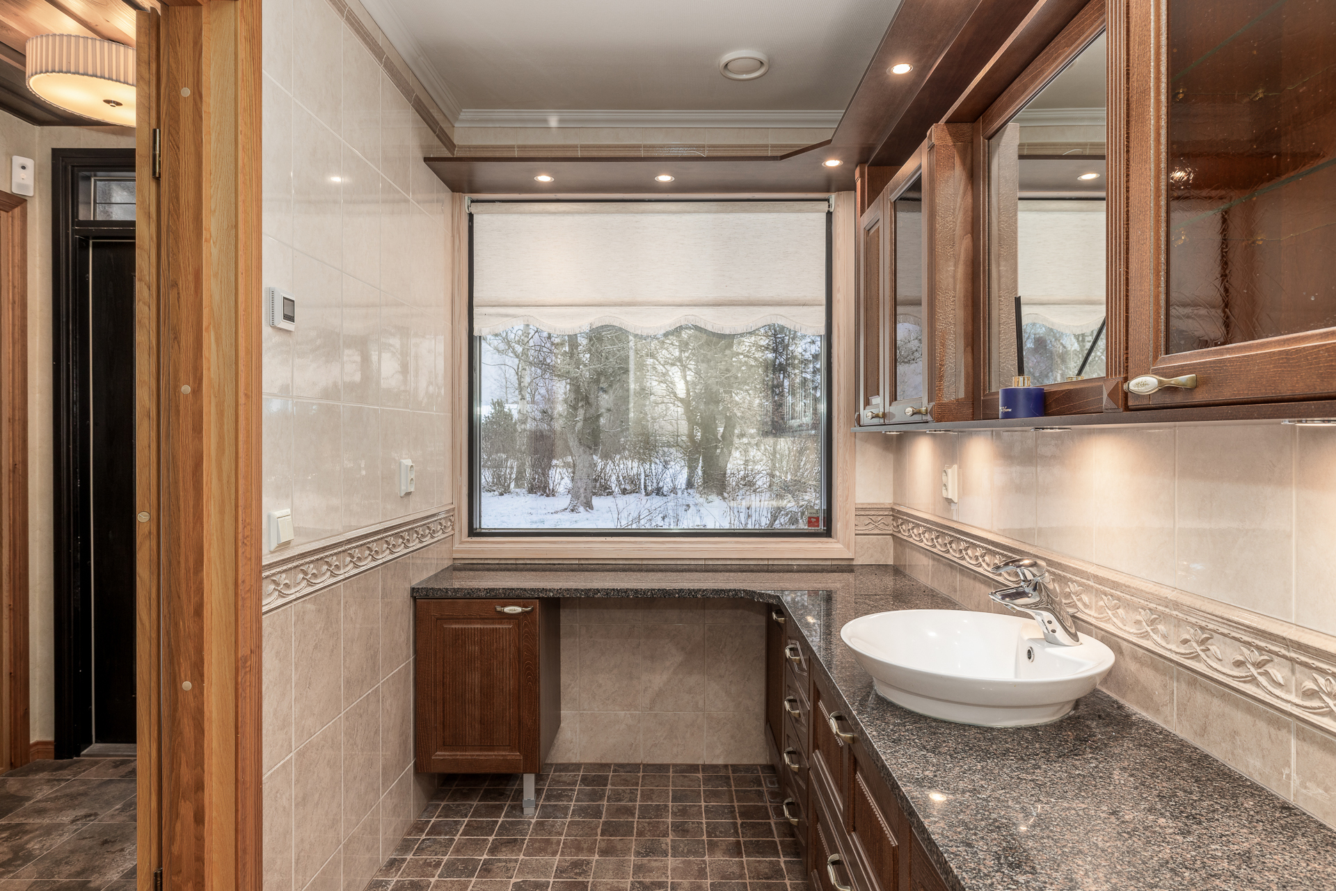 Suuri talo, jossa on neljä reilunkokoista makuuhuonetta, olohuone, ruokailutila, tilava keittiö, leivinuunihuone, työhuone, kolme vaatehuonetta, kodinhoitohuone, kylpyhuone, sauna sekä kaksi erillistä wc:tä. Lisäksi taloon on rakennettu tilava käyttöullakko vuonna 2004, jolloin kattoa korotettiin ja uusittiin.