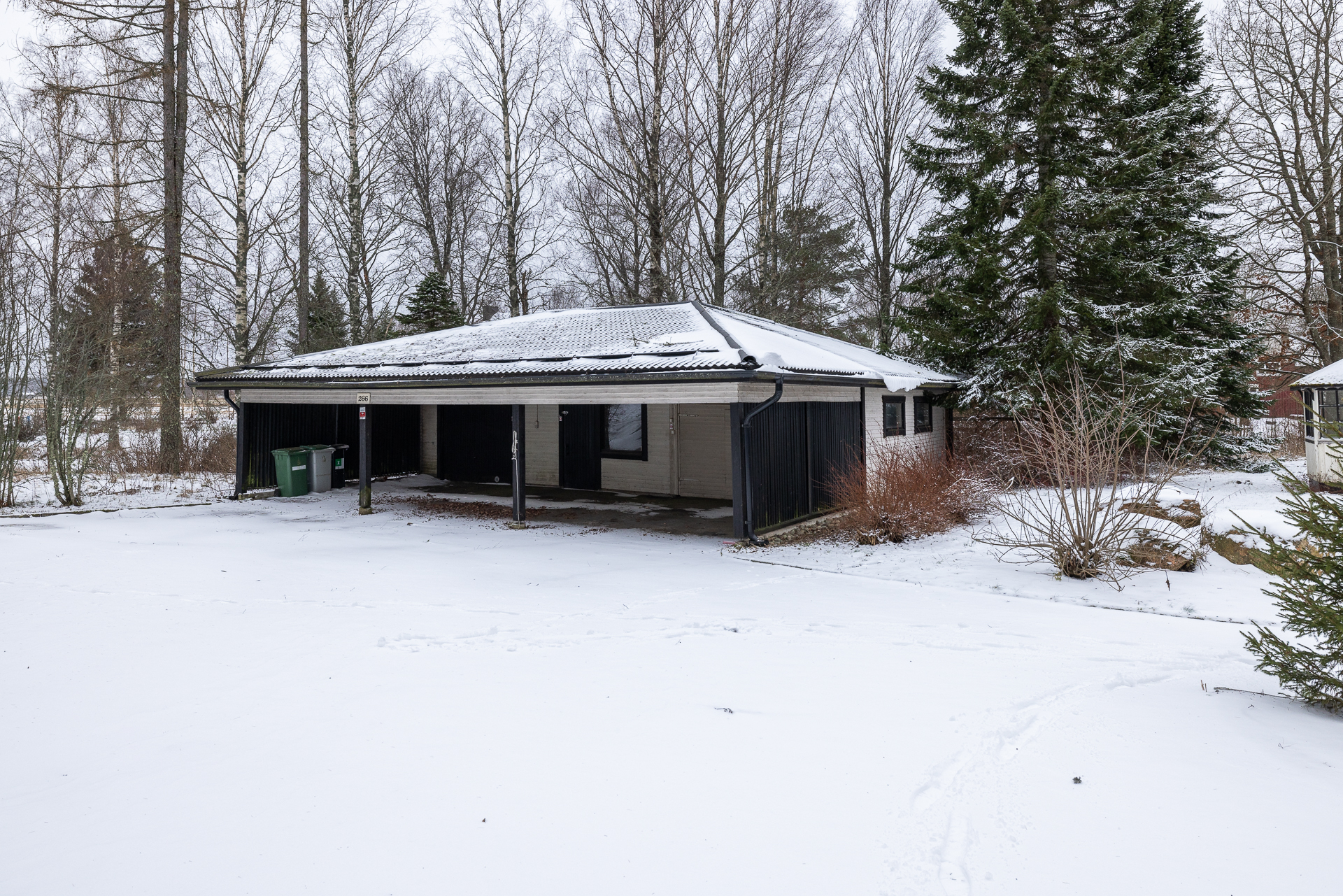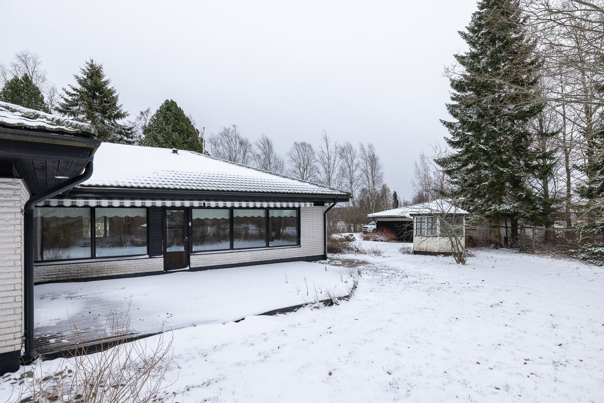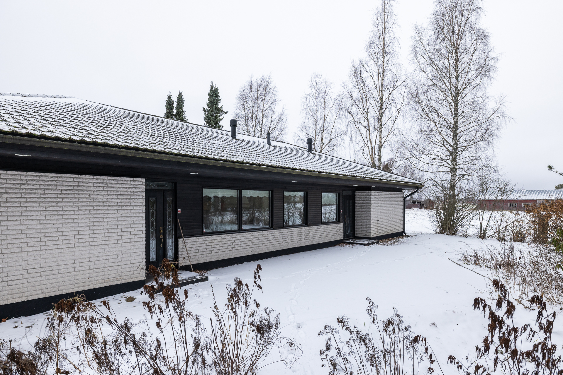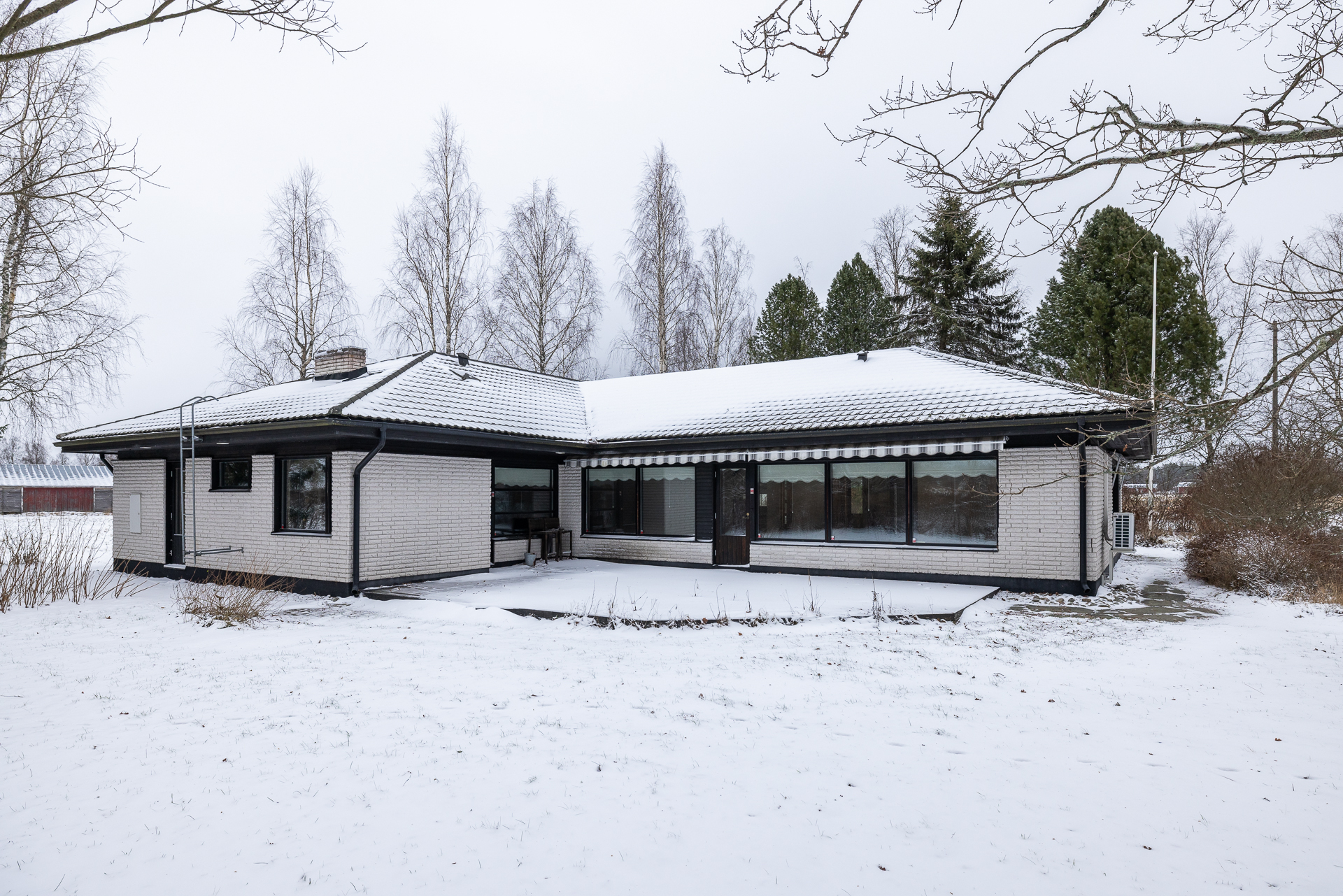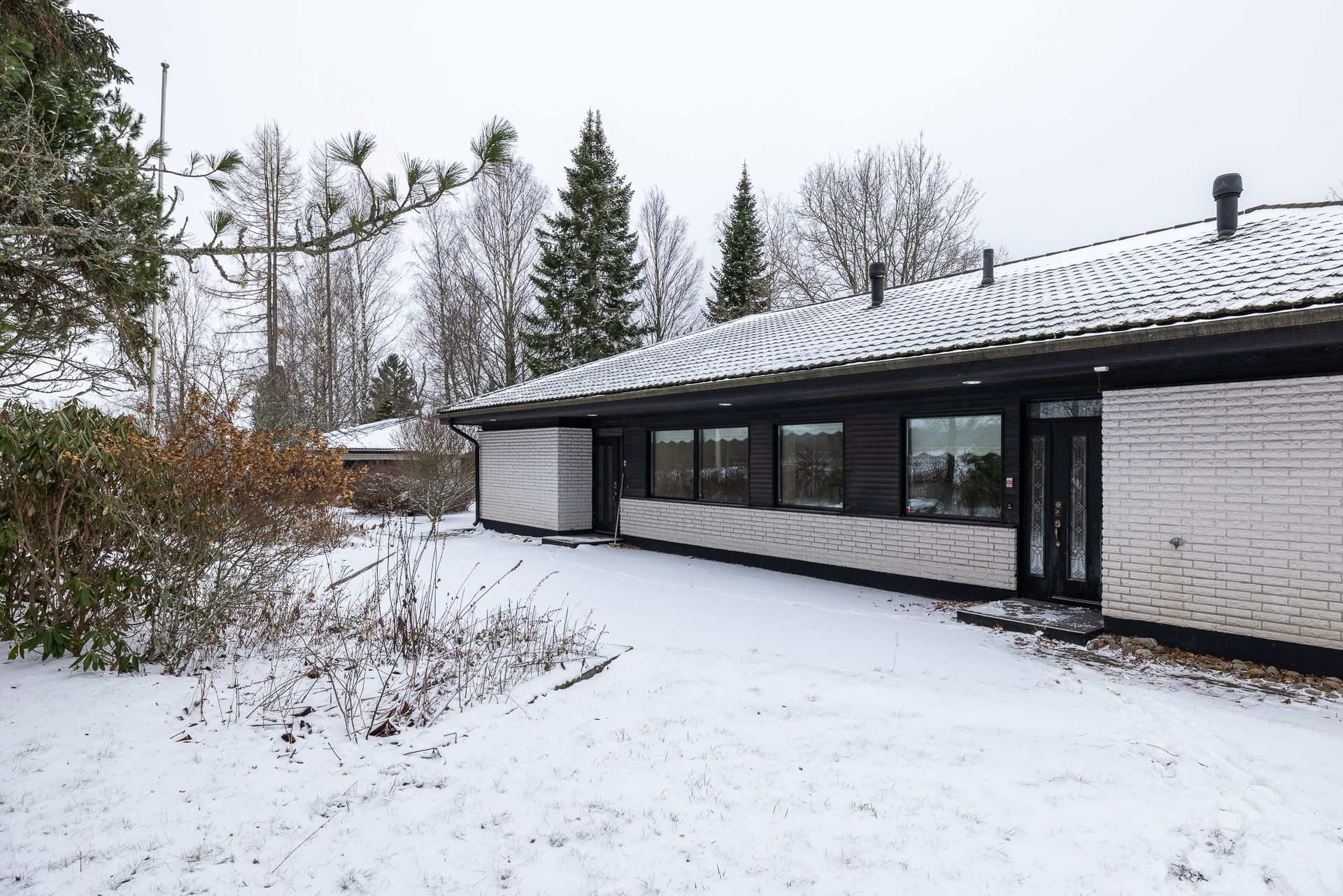 Asfaltoidulla pihalla sijaitsee myös erillinen 45 m²:n autotalli- ja varastorakennus, joka tarjoaa runsaasti säilytystilaa.