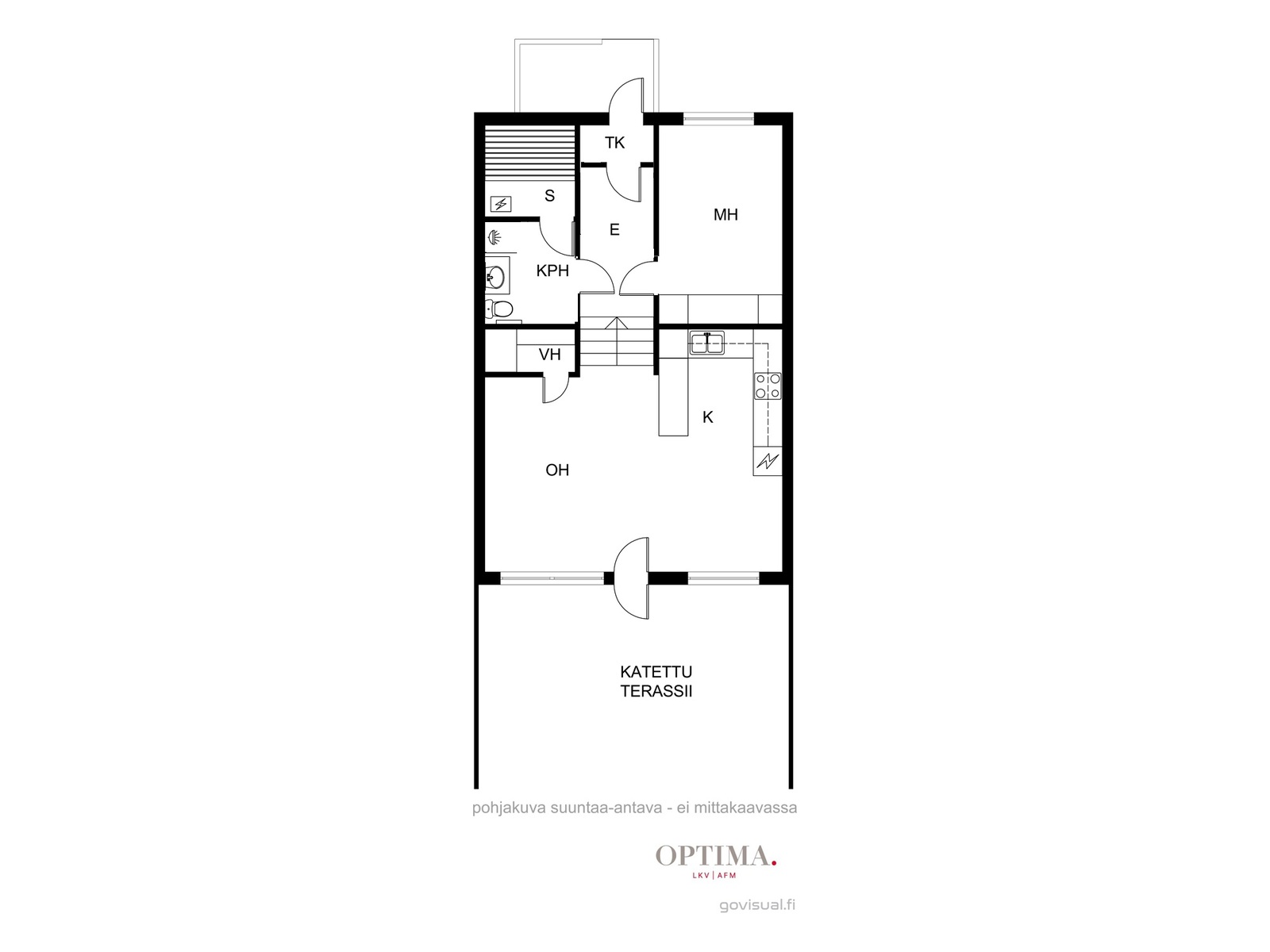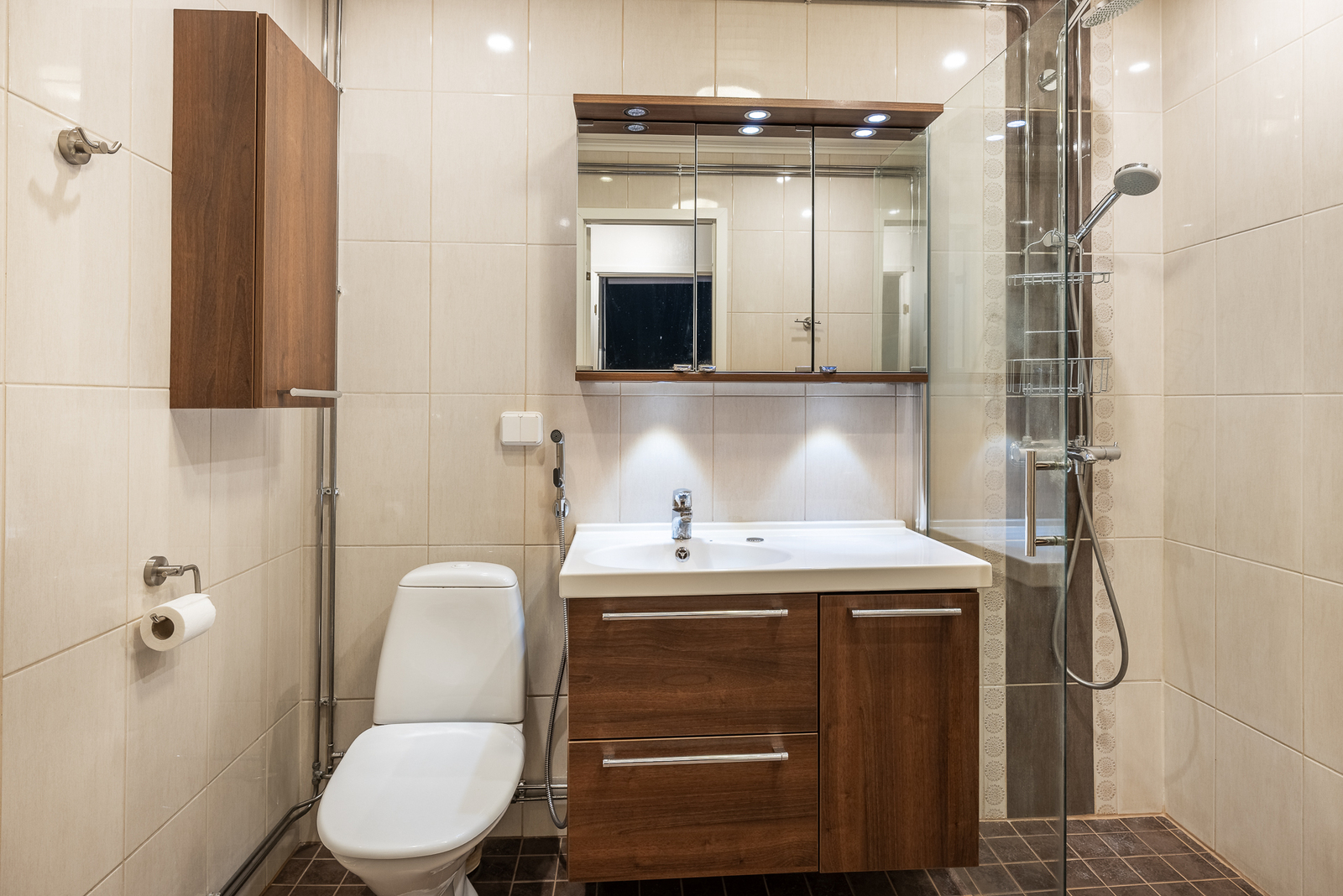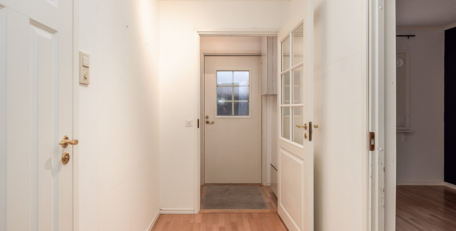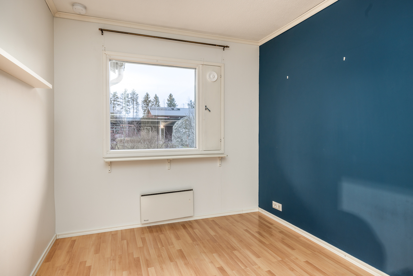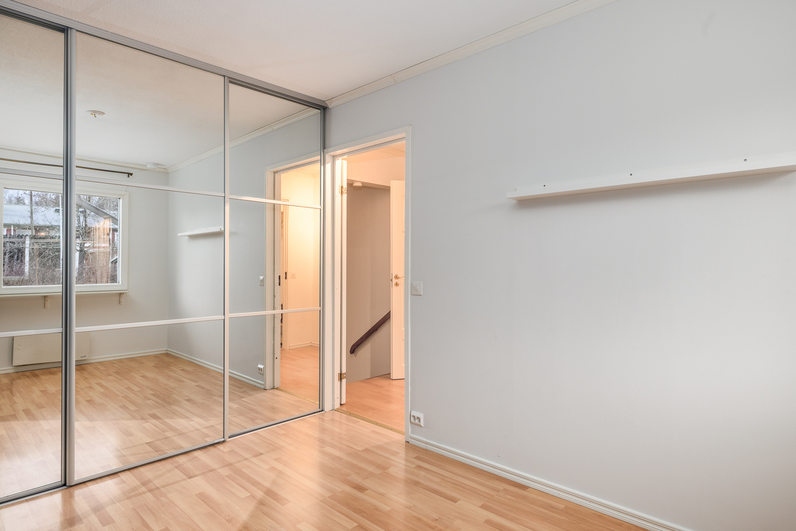 Sisäänkäynnillä sinua tervehtii käytännöllinen kuisti, josta kulku jatkuu asunnon ylemmälle tasolle. Täällä sijaitsevat makuuhuone, siisti kylpyhuone sekä oma sauna, jotka on kunnostettu vuonna 2010.