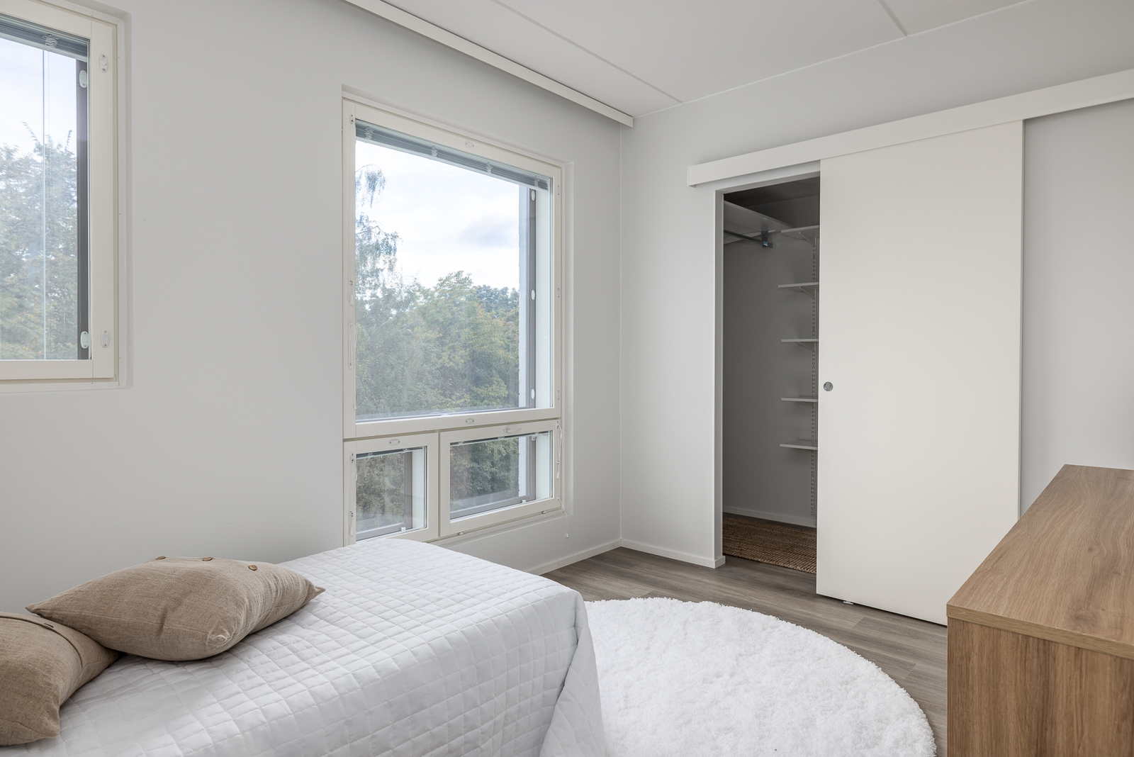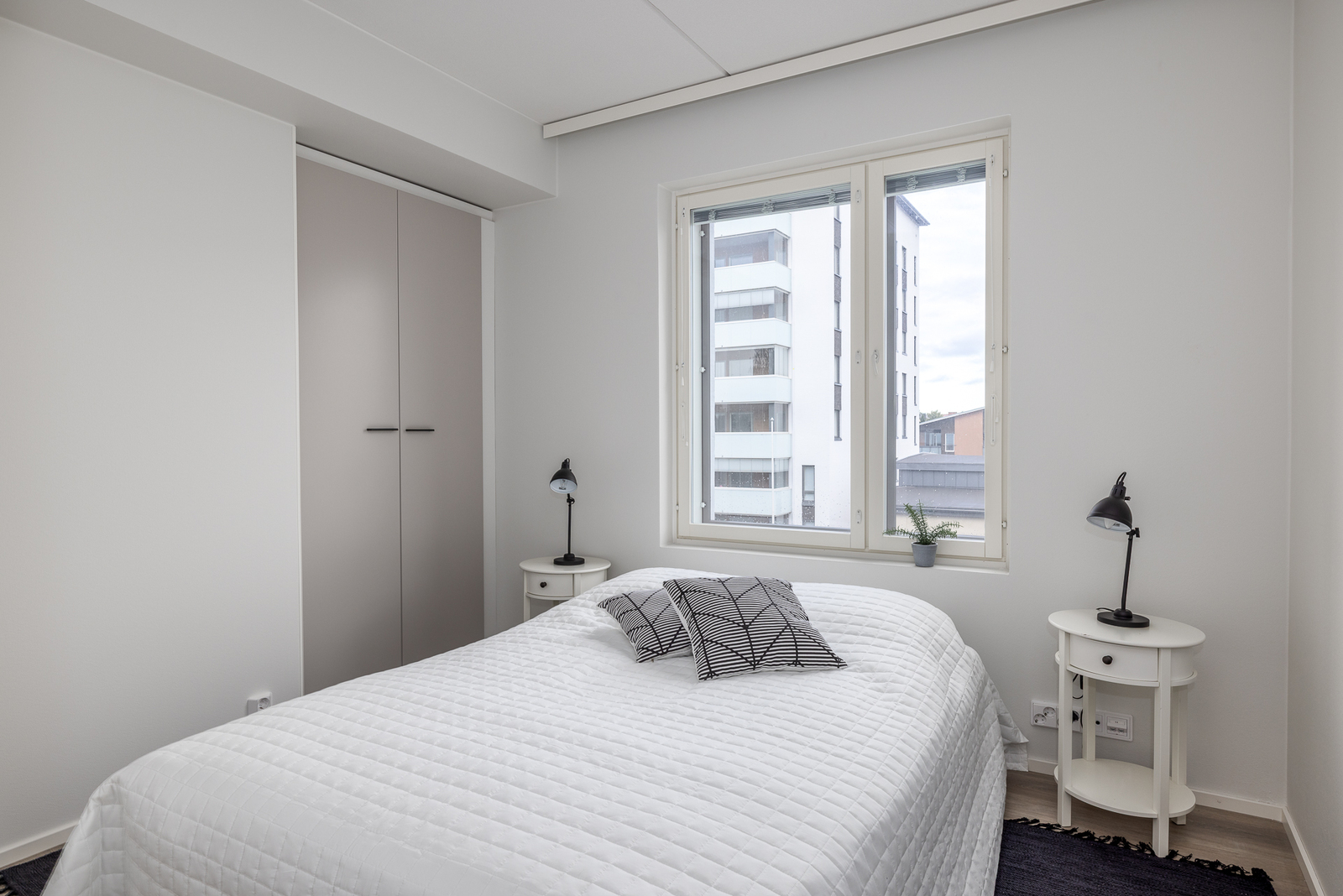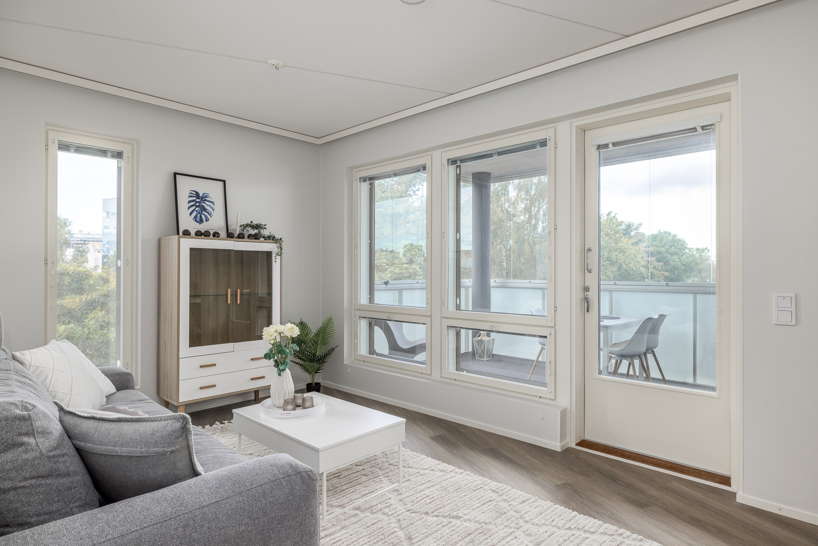 Tämä valoisa neljän huoneen asunto sijaitsee hissitalon 4. kerroksessa.