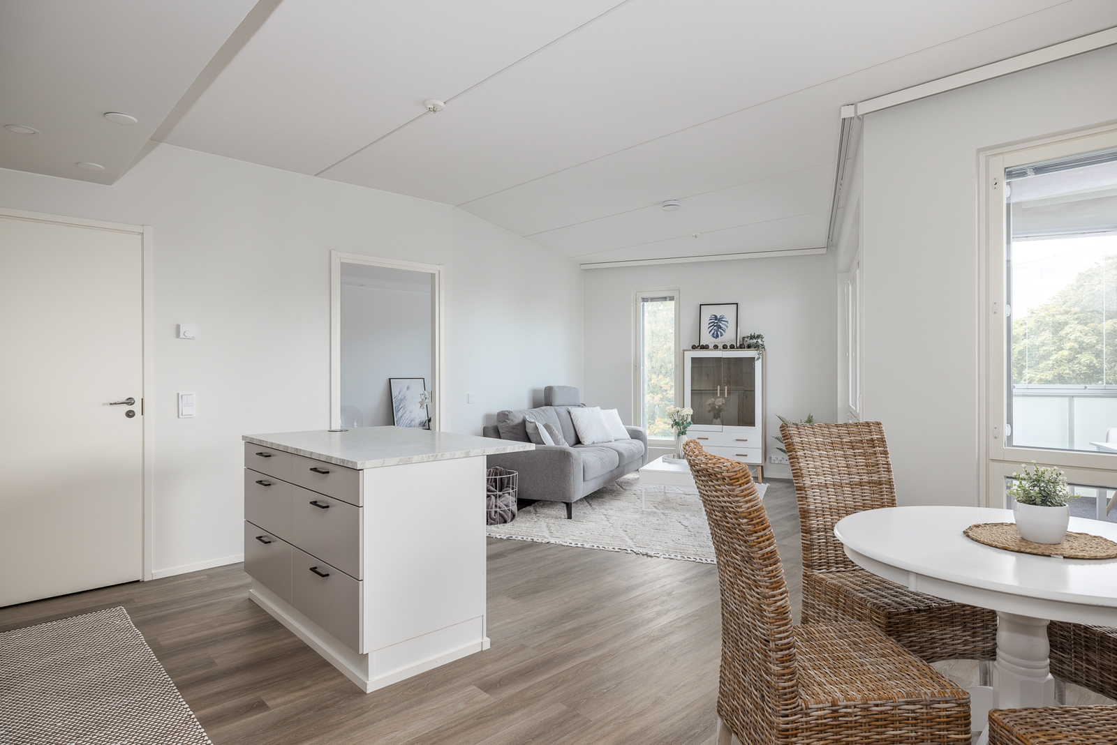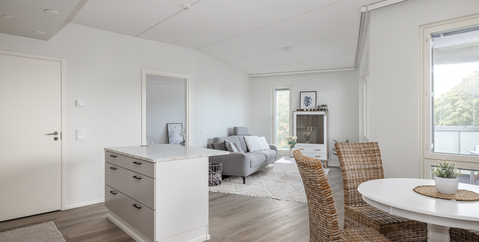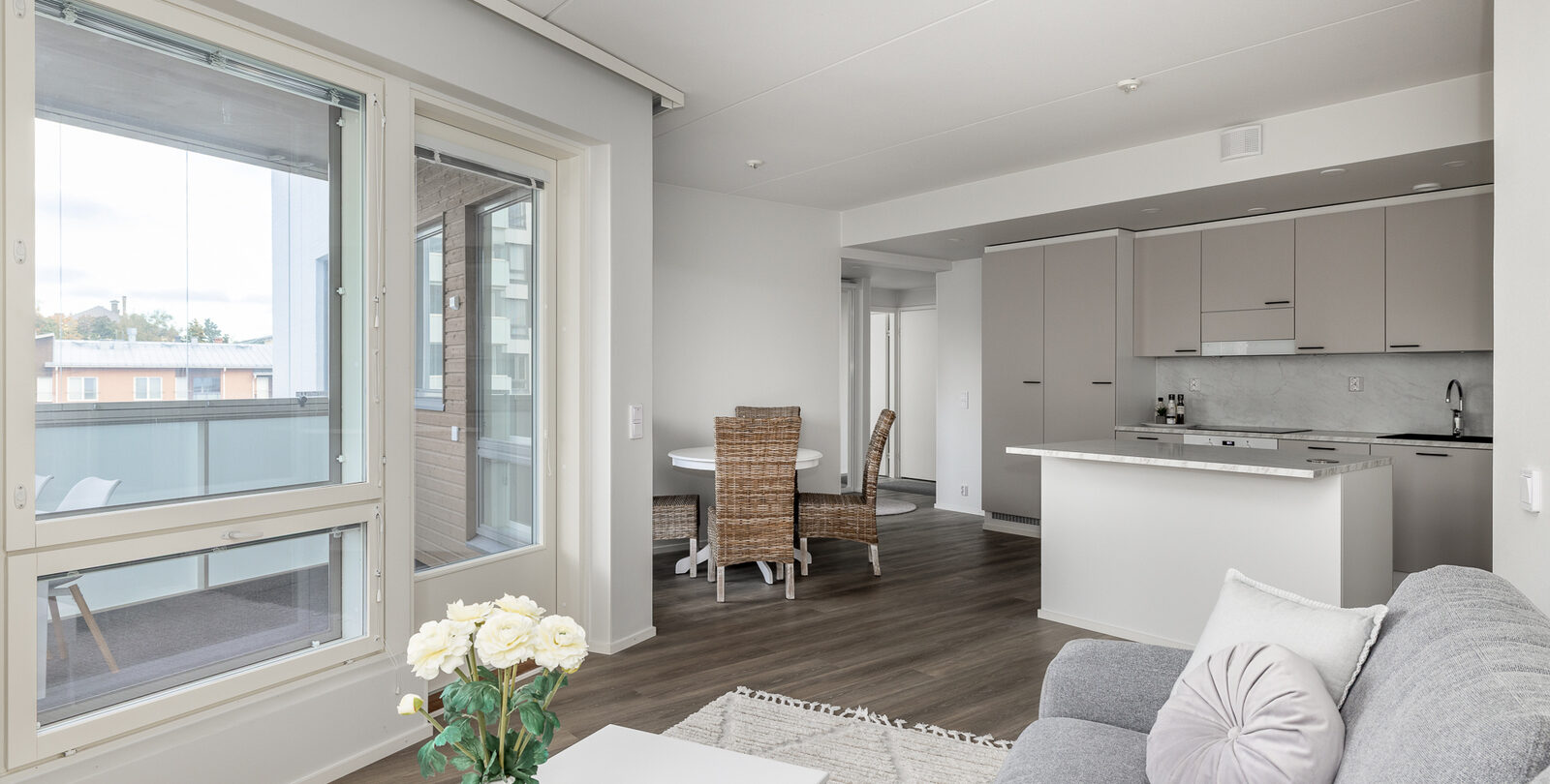 – Avara tila yhdistetyssä olohuoneessa ja keittiötilassa