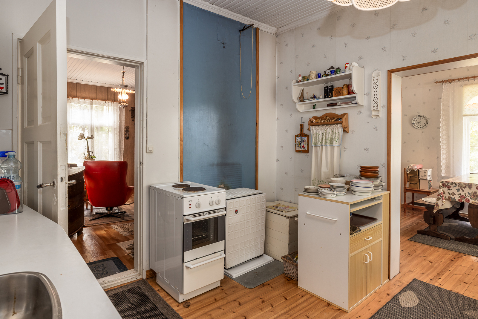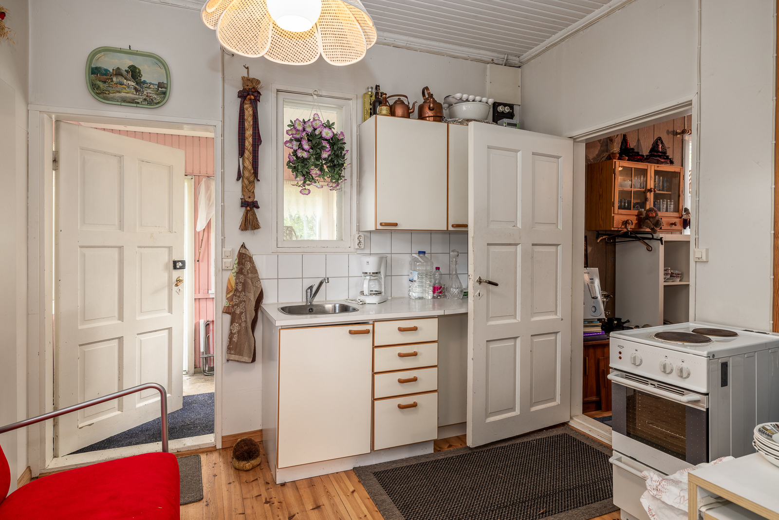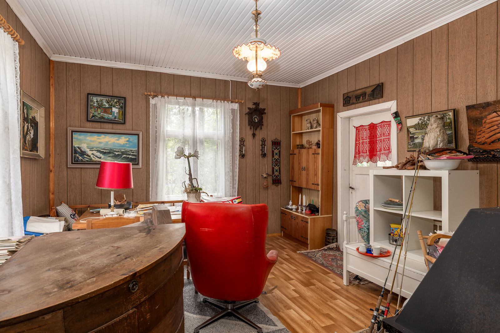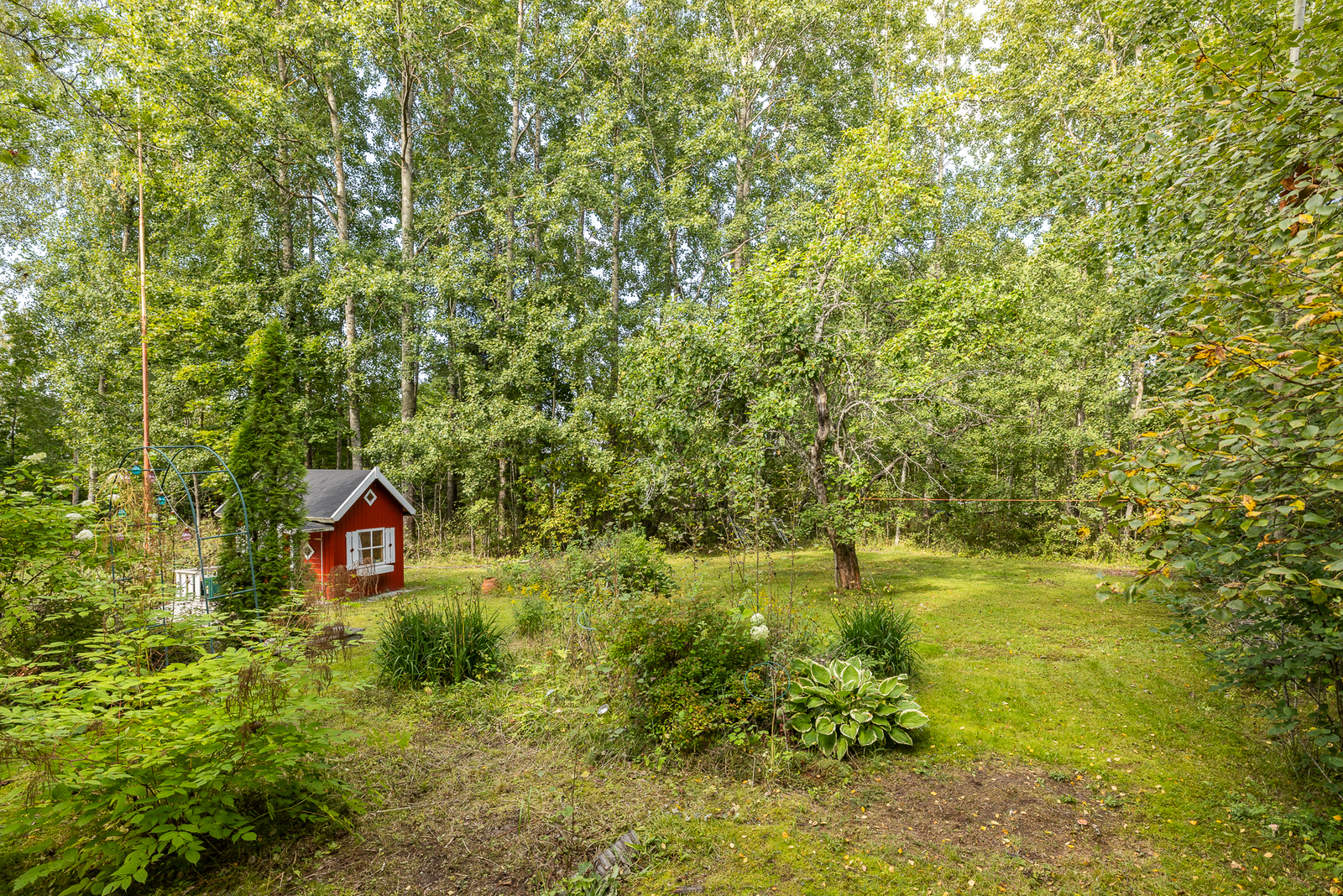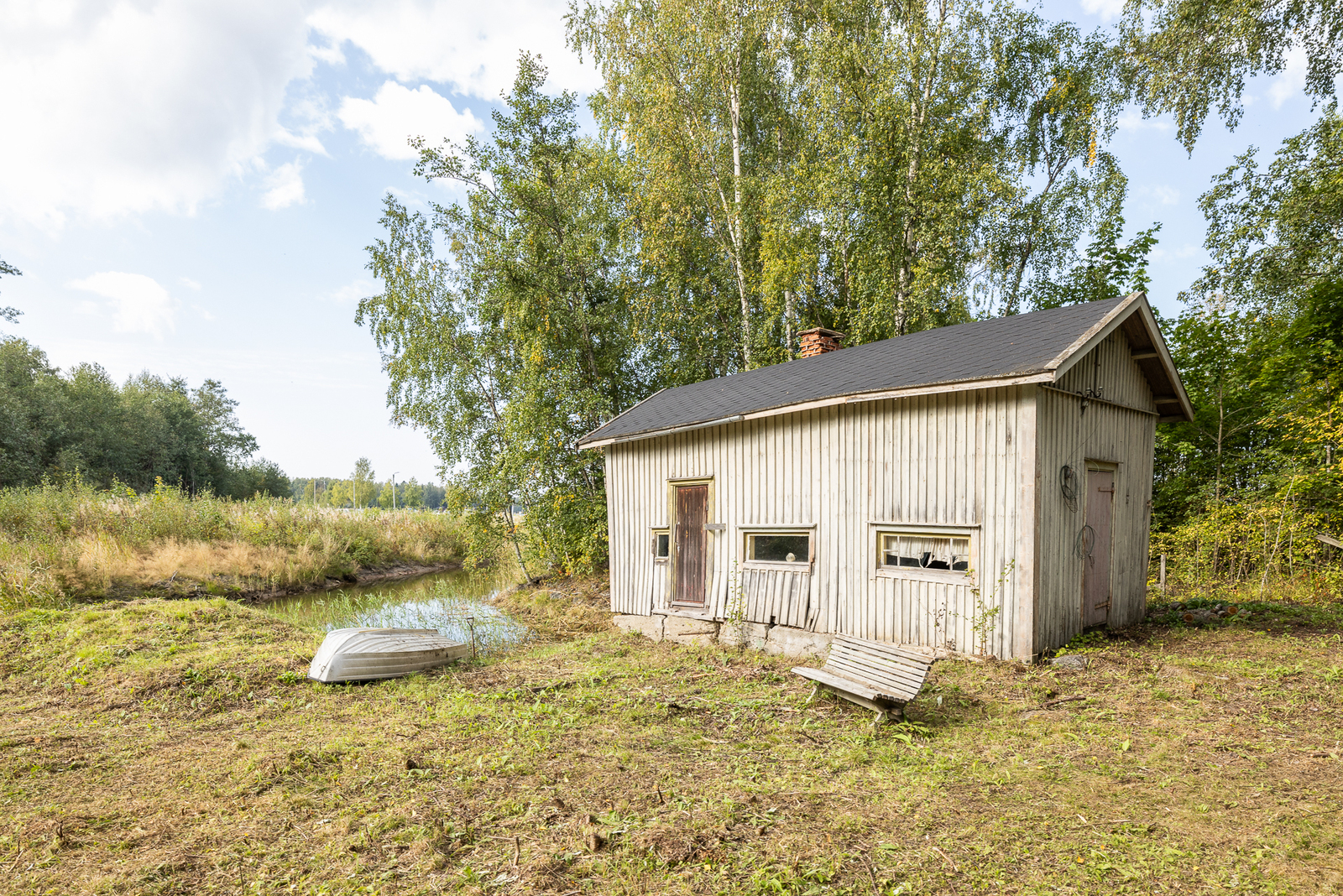 Tontilla sijaitsee vanhempi hirsirakenteinen kesämökki, joka myydään purkukuntoisena. Lisäksi rannassa on vanhempi ja tilava hirsinen saunarakennus, joka tuo paikkaan aidon saaristotunnelman.
