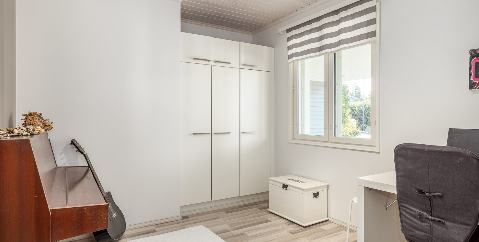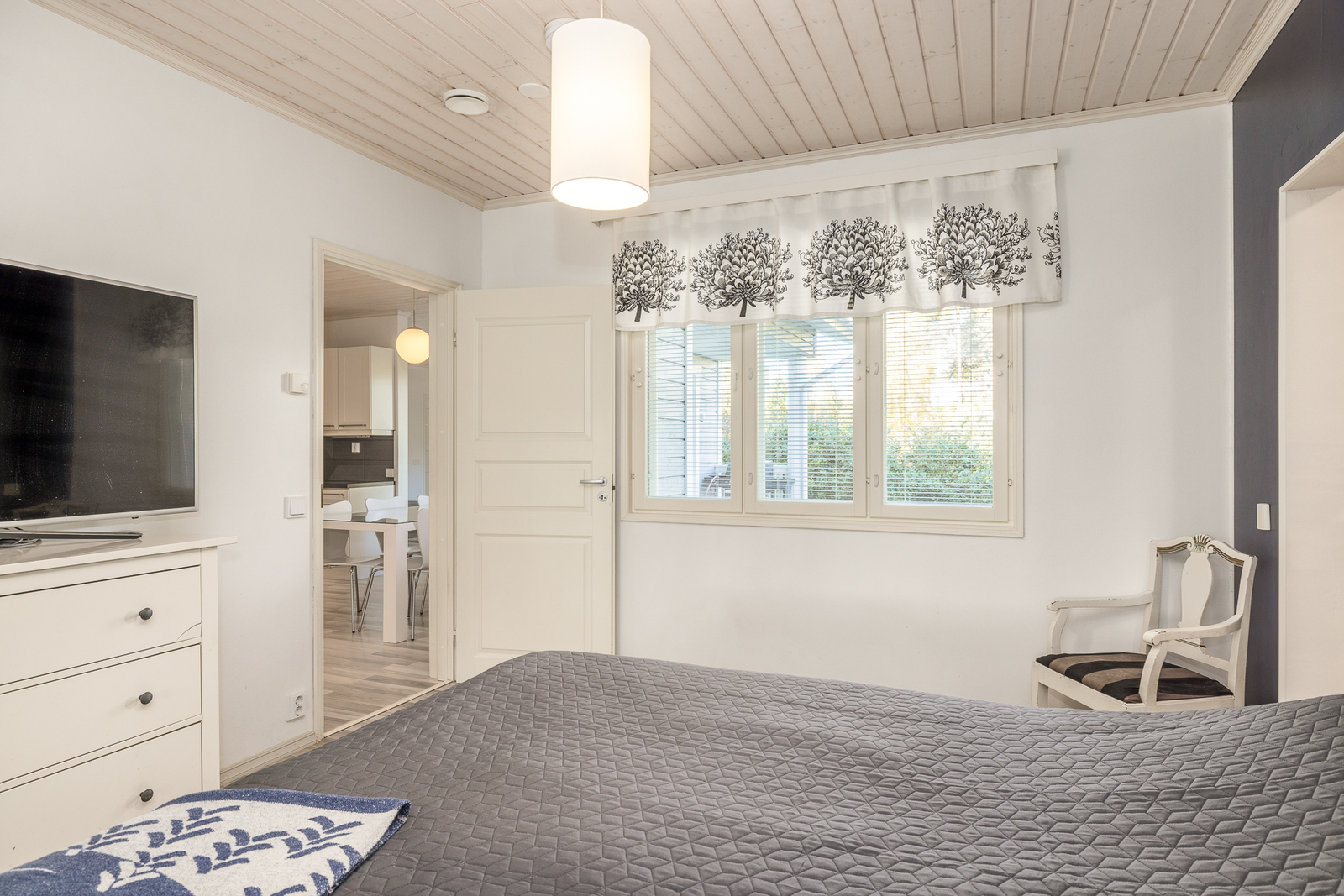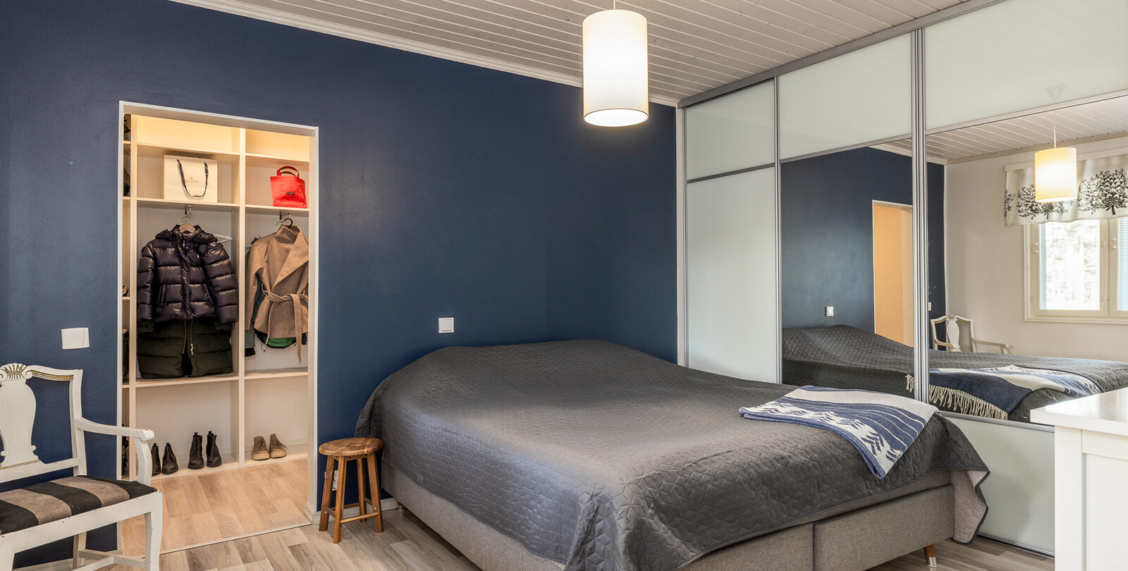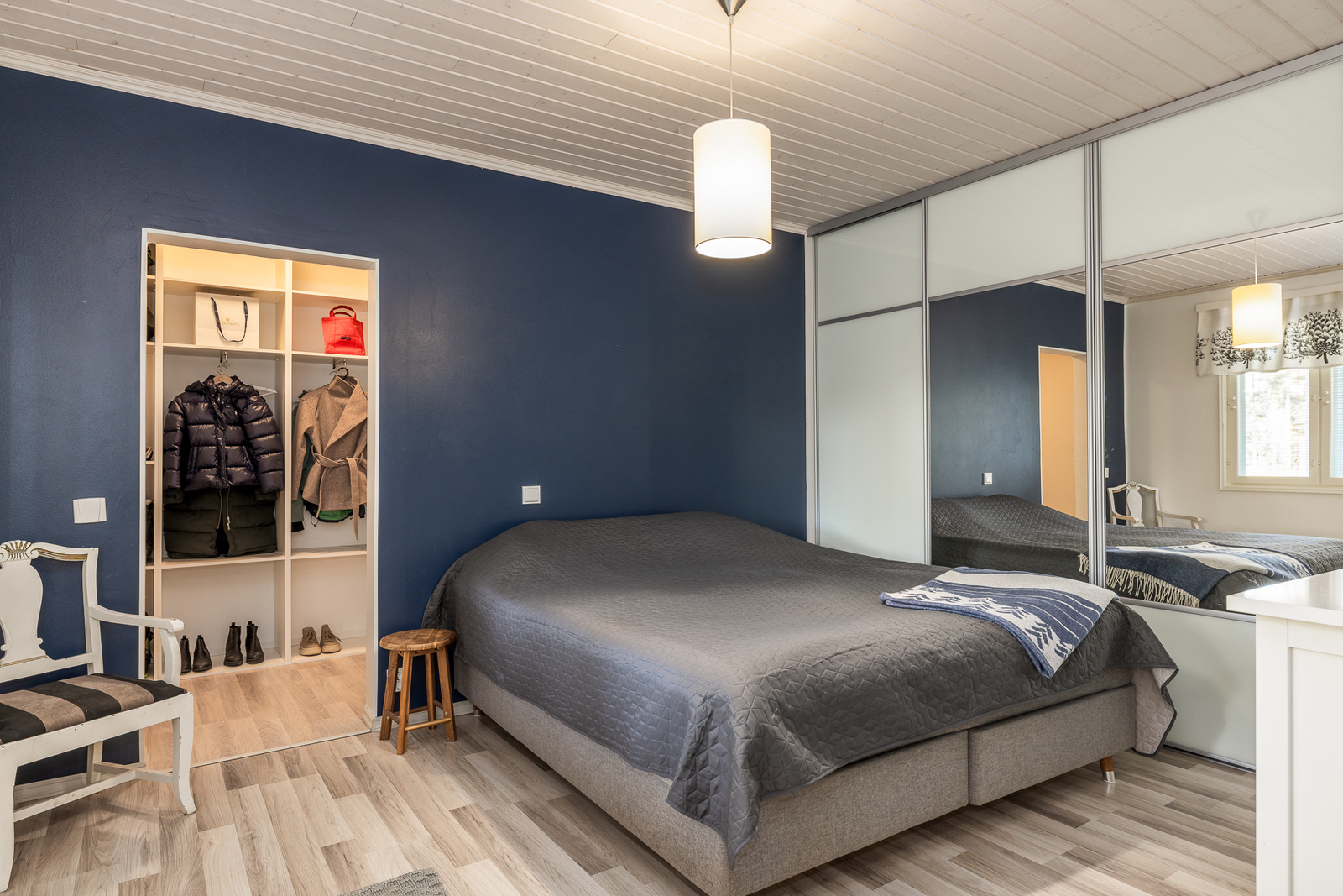 Päämakuuhuoneessa on sekä säilytyskaapit että tilava vaatehuone, täydellinen sinulle, joka arvostat säilytystilaa.