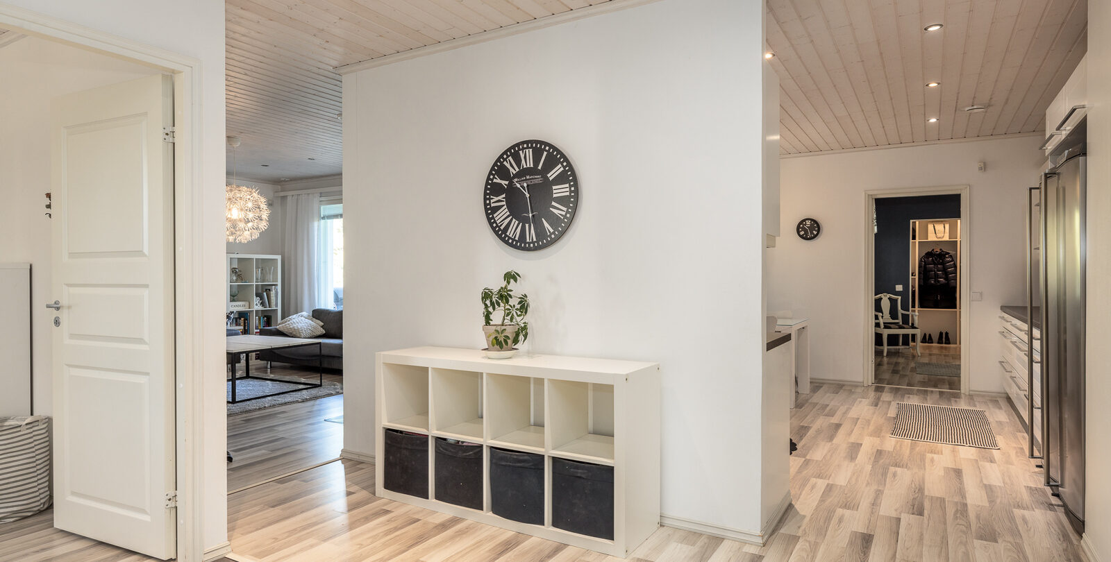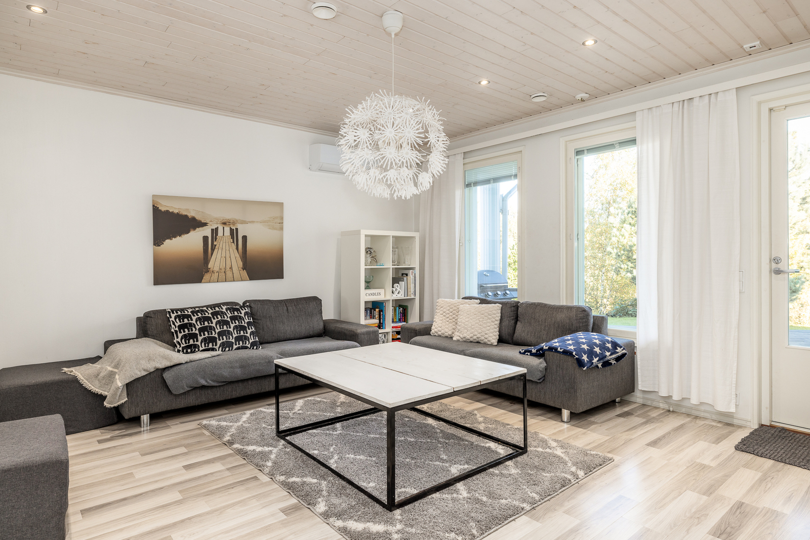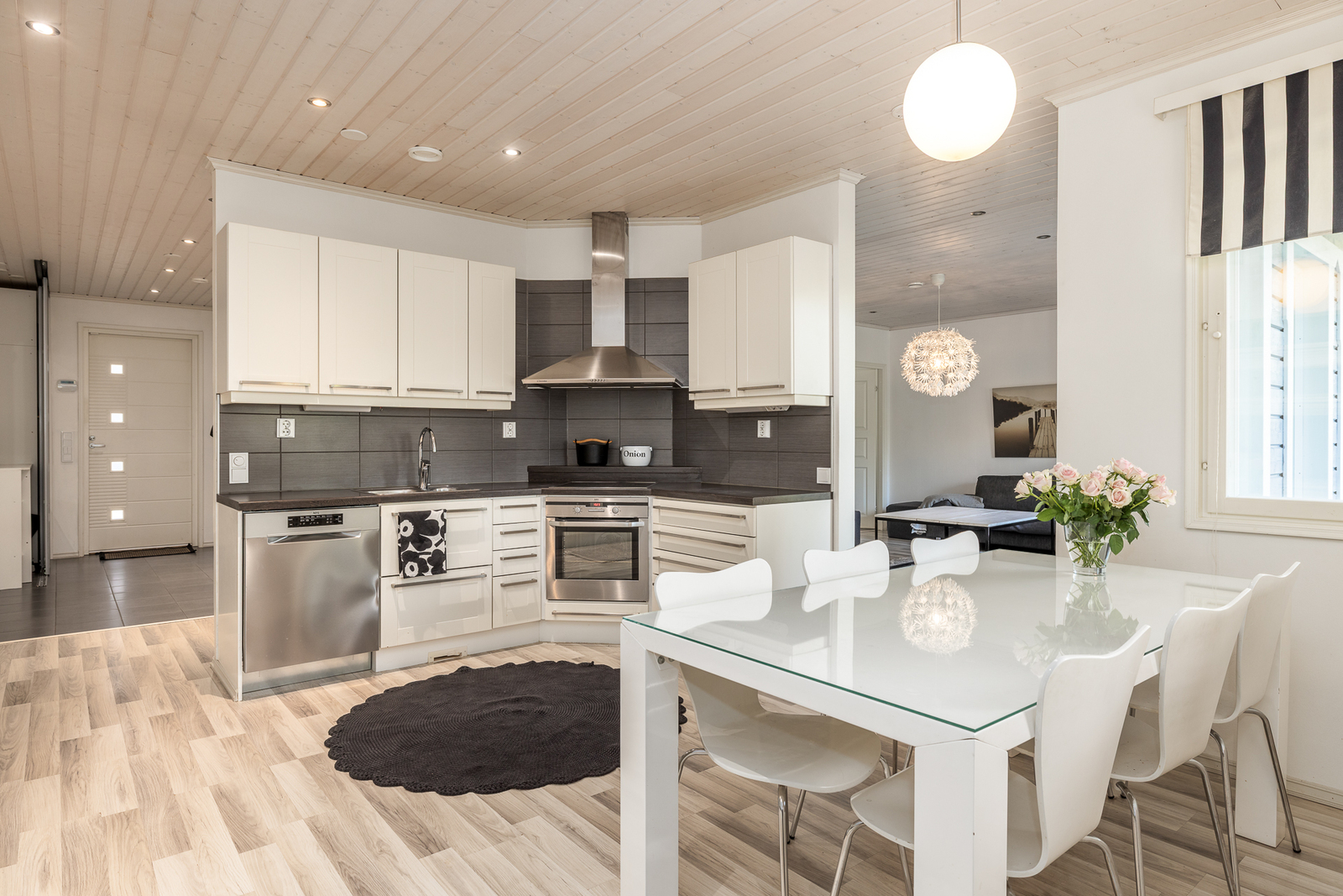 Talo on rakennettu yhteen tasoon ja tarjoaa toimivaa ja avaraa asumista koko perheelle. Neljä makuuhuonetta antavat hyvin tilaa niin arkeen kuin etätyöskentelyynkin. Tilava keittiö on osittain erillään olohuoneesta, mikä luo mukavan tasapainon avoimen tilaratkaisun ja erillisten oleskelutilojen välillä.