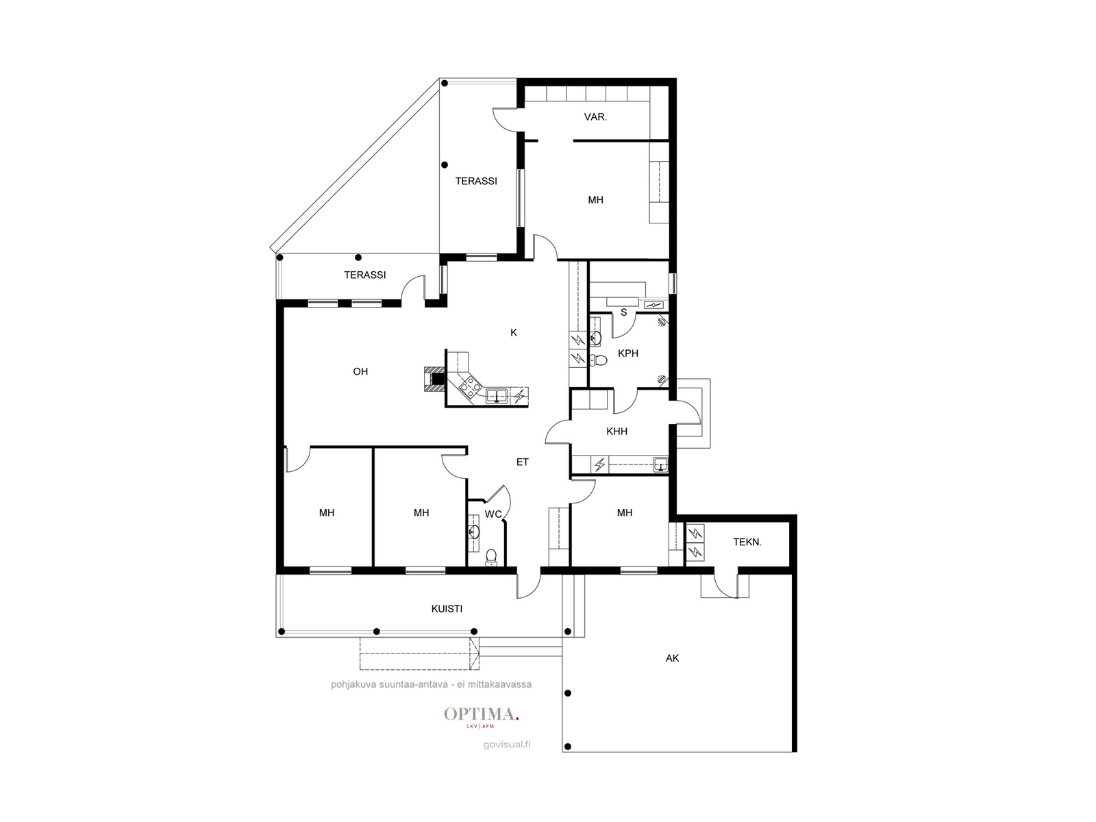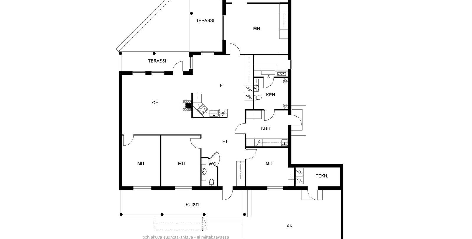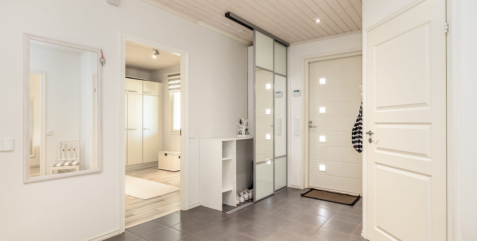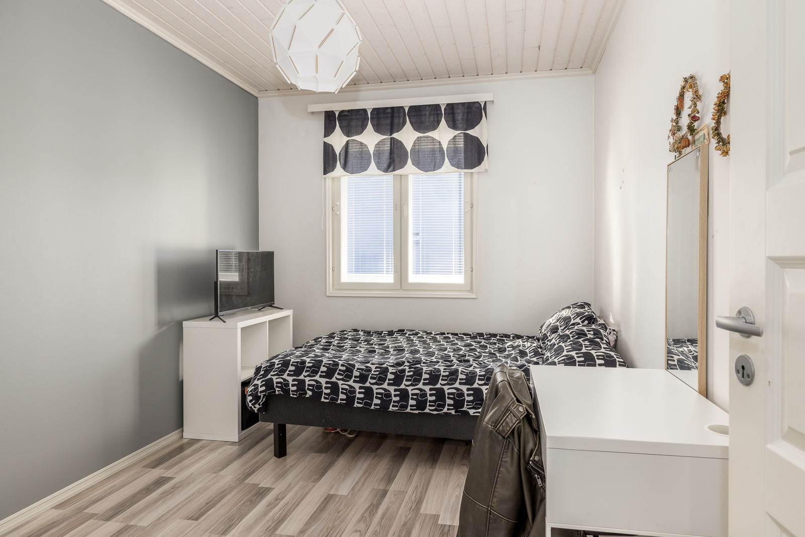 Talo on rakennettu yhteen tasoon ja tarjoaa toimivaa ja avaraa asumista koko perheelle. Neljä makuuhuonetta antavat hyvin tilaa niin arkeen kuin etätyöskentelyynkin. Tilava keittiö on osittain erillään olohuoneesta, mikä luo mukavan tasapainon avoimen tilaratkaisun ja erillisten oleskelutilojen välillä.