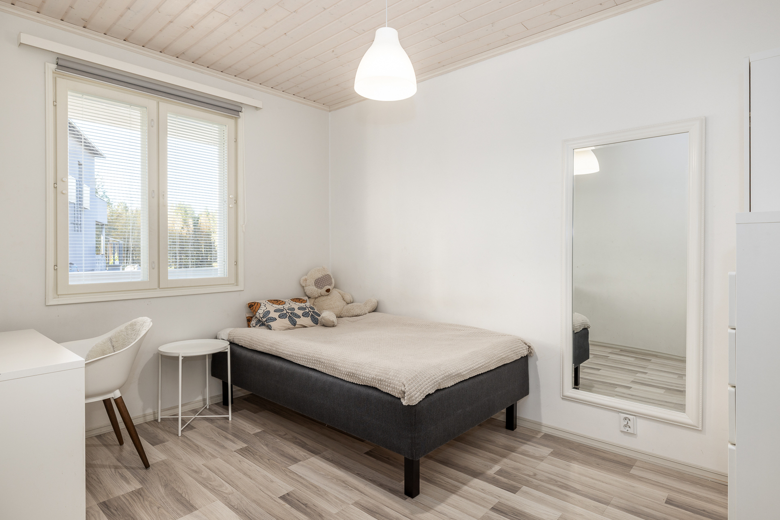 Tervetuloa tähän viihtyisään ja hyvin suunniteltuun omakotitaloon suositulla Koskisuon alueella, rauhallisella ja lapsiystävällisellä paikalla aivan Kivihaan palveluiden läheisyydessä. Asut päättyvän tien päässä, suojaisalla tontilla, jonka rajana on viheralue ja pihapiiri tarjoaa yksityisyyttä ja rauhaa.