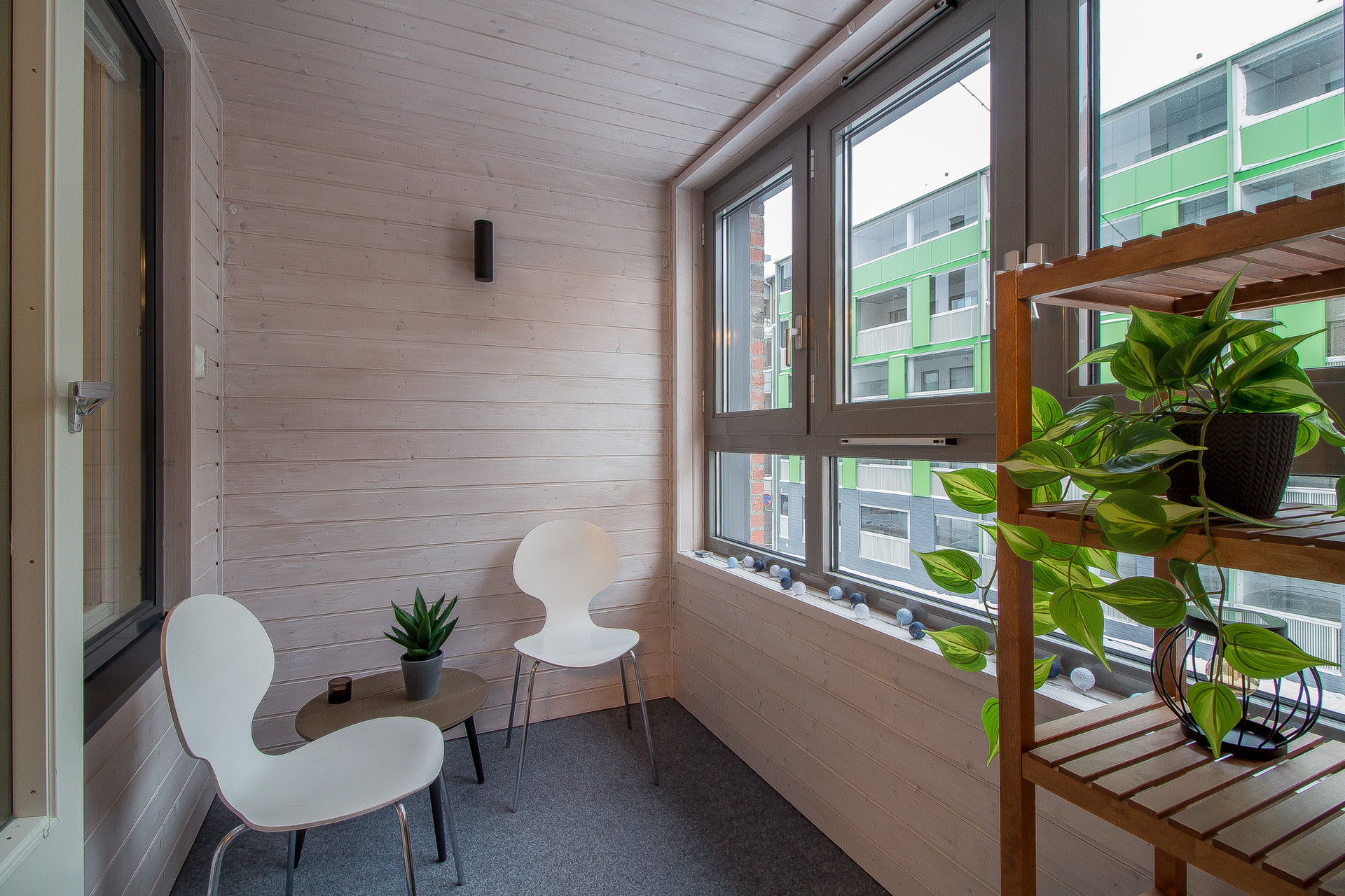 Som extra utrymme till lägenheten finns en trivsam inglasad balkong.