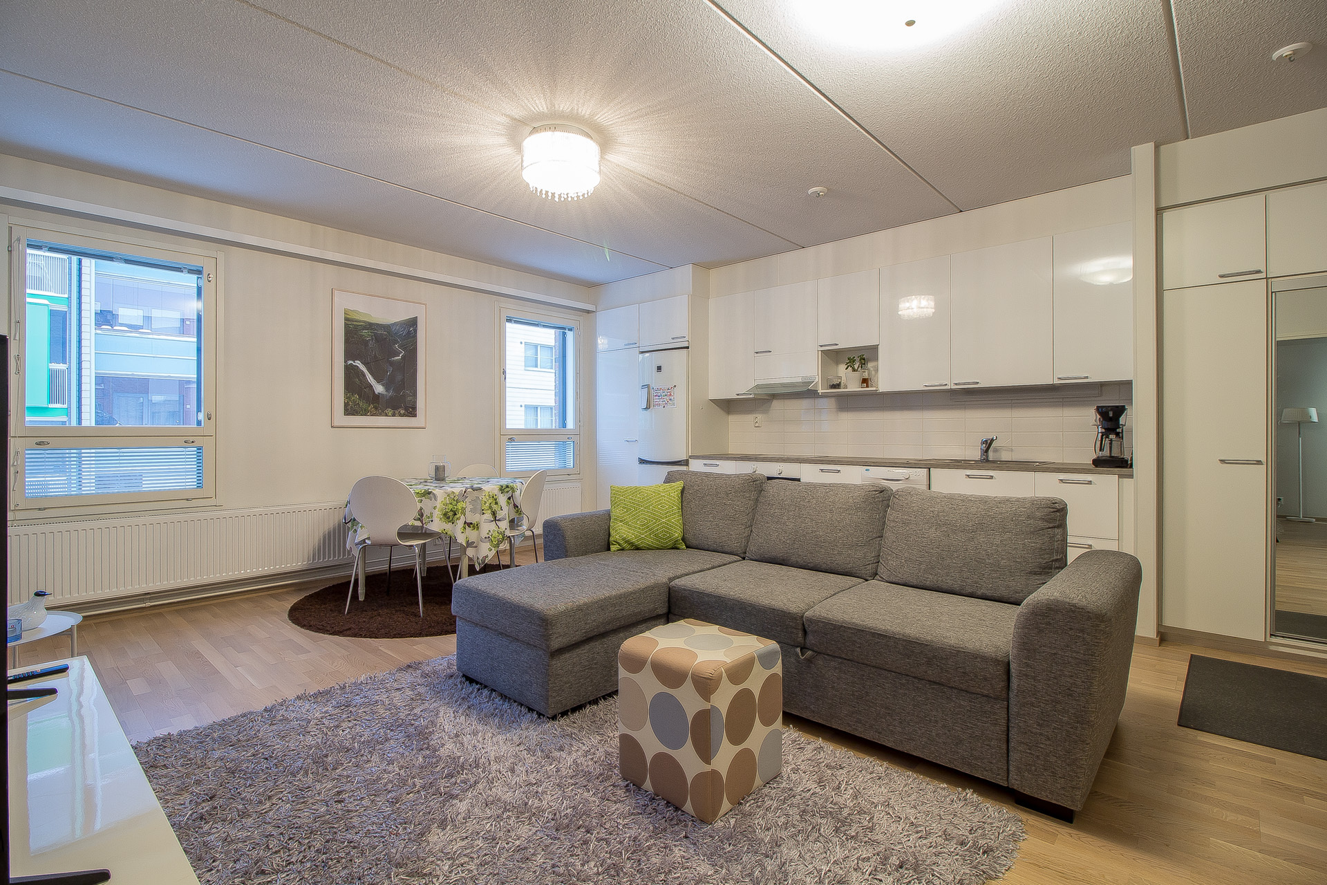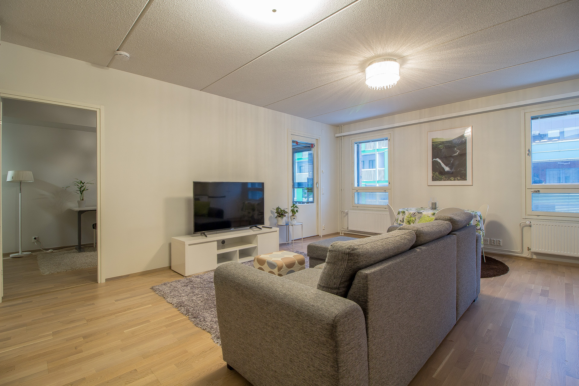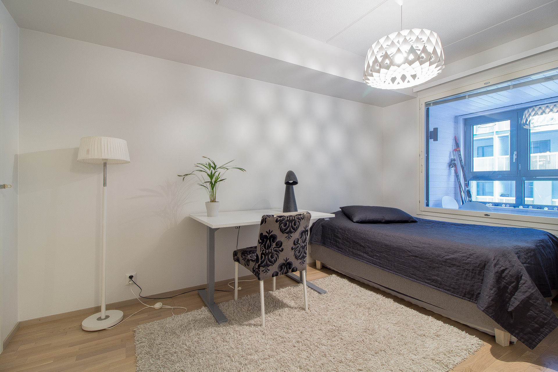 En välplanerad och nätt lägenhet i ett år 2016 byggt höghus i Teaterkvarteret. Köket och vardagsrummet bildar en öppen helhet, skilt sovrum som har ett rymligt klädrum. Egen bastu i lägenheten och i det stora badrummet finns golvvärme och plats för tvätt torn.