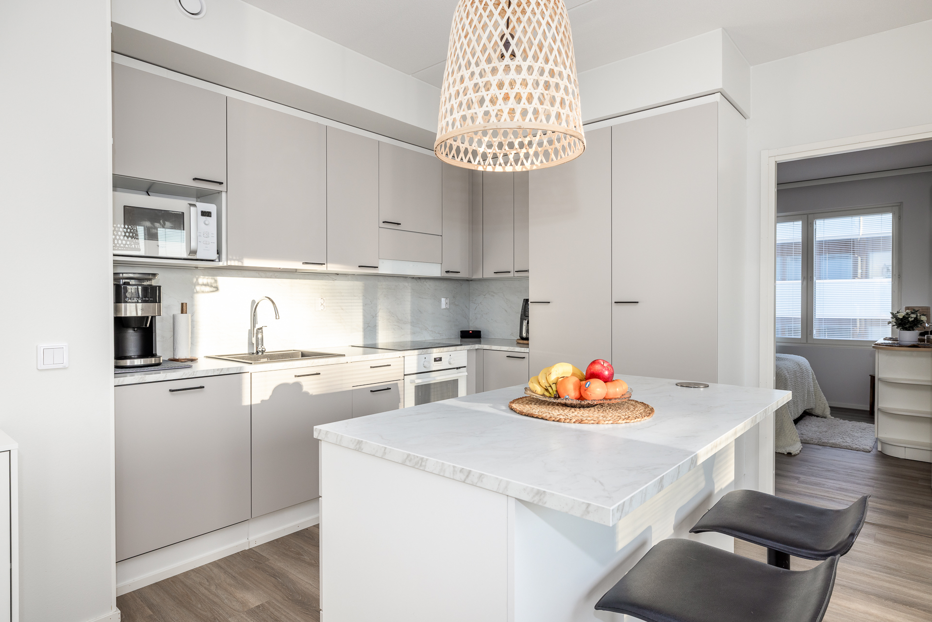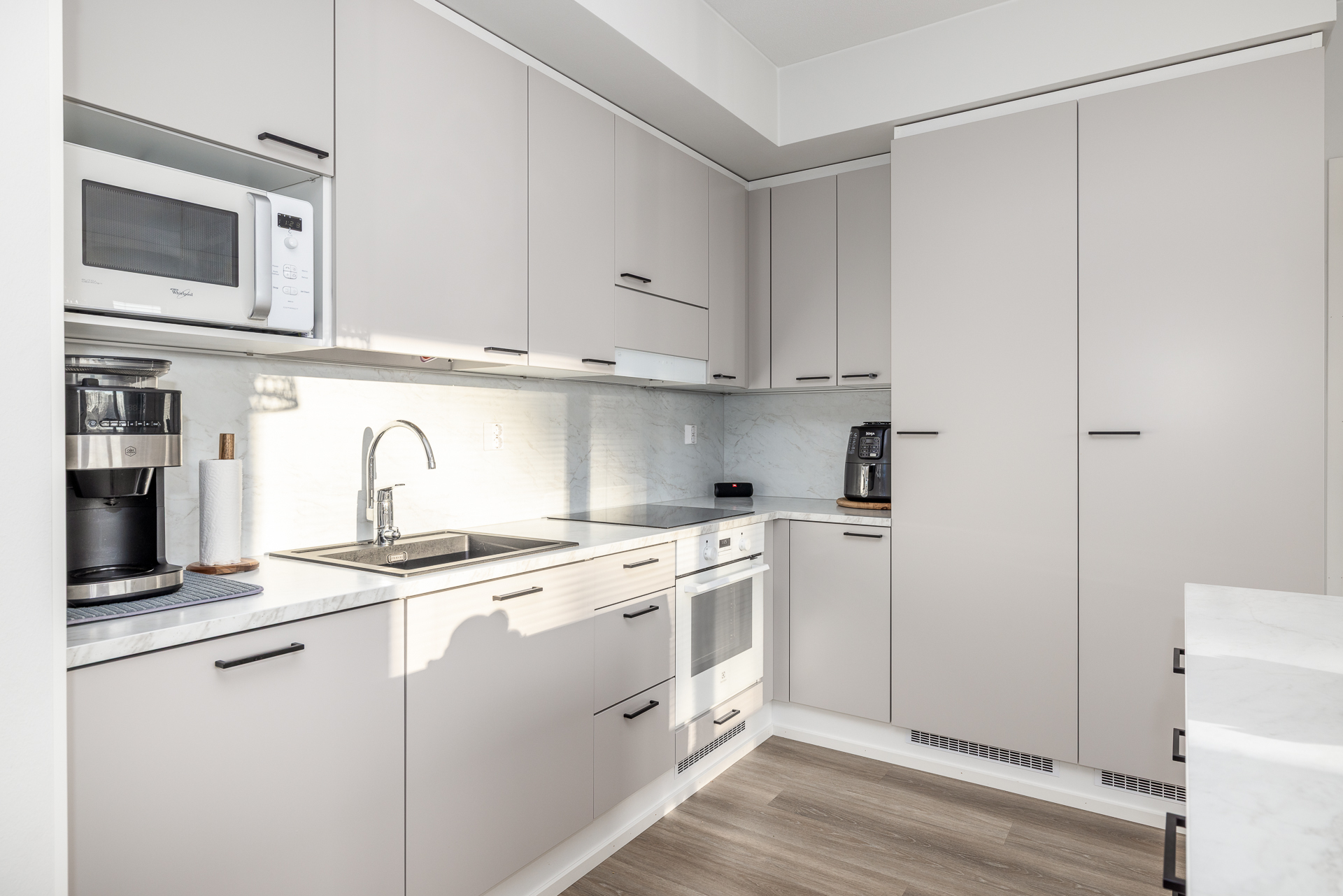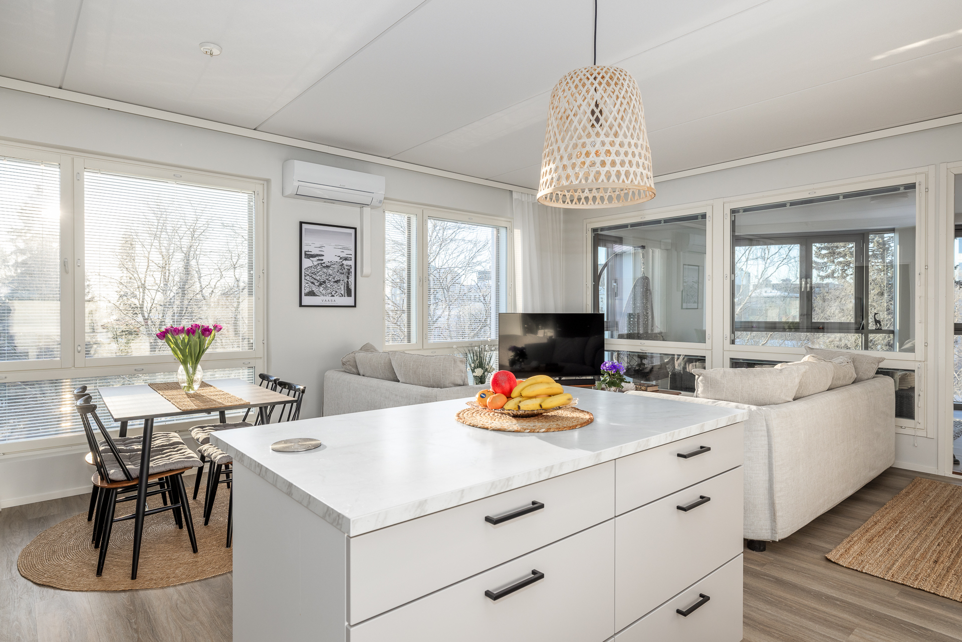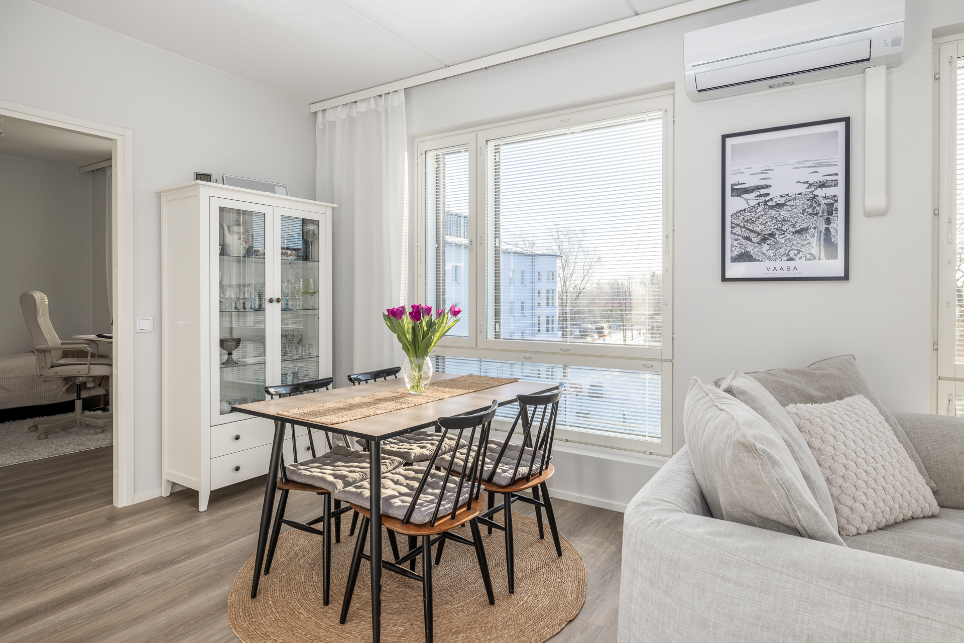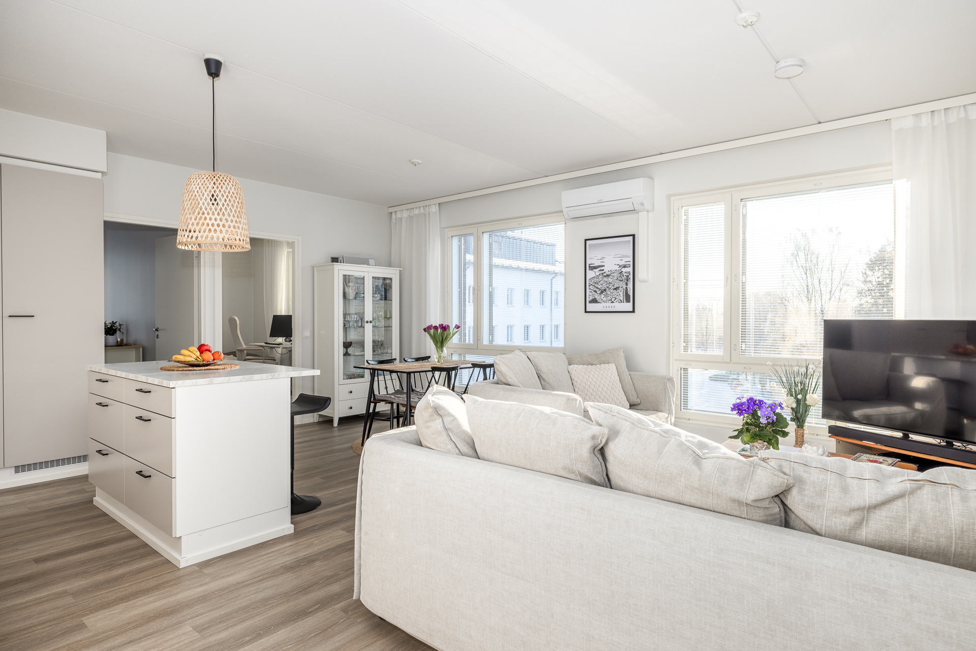Till salu en ljus och motsvarande ny trerummare i centrala Vasa, i ett hus byggt år 2023.
