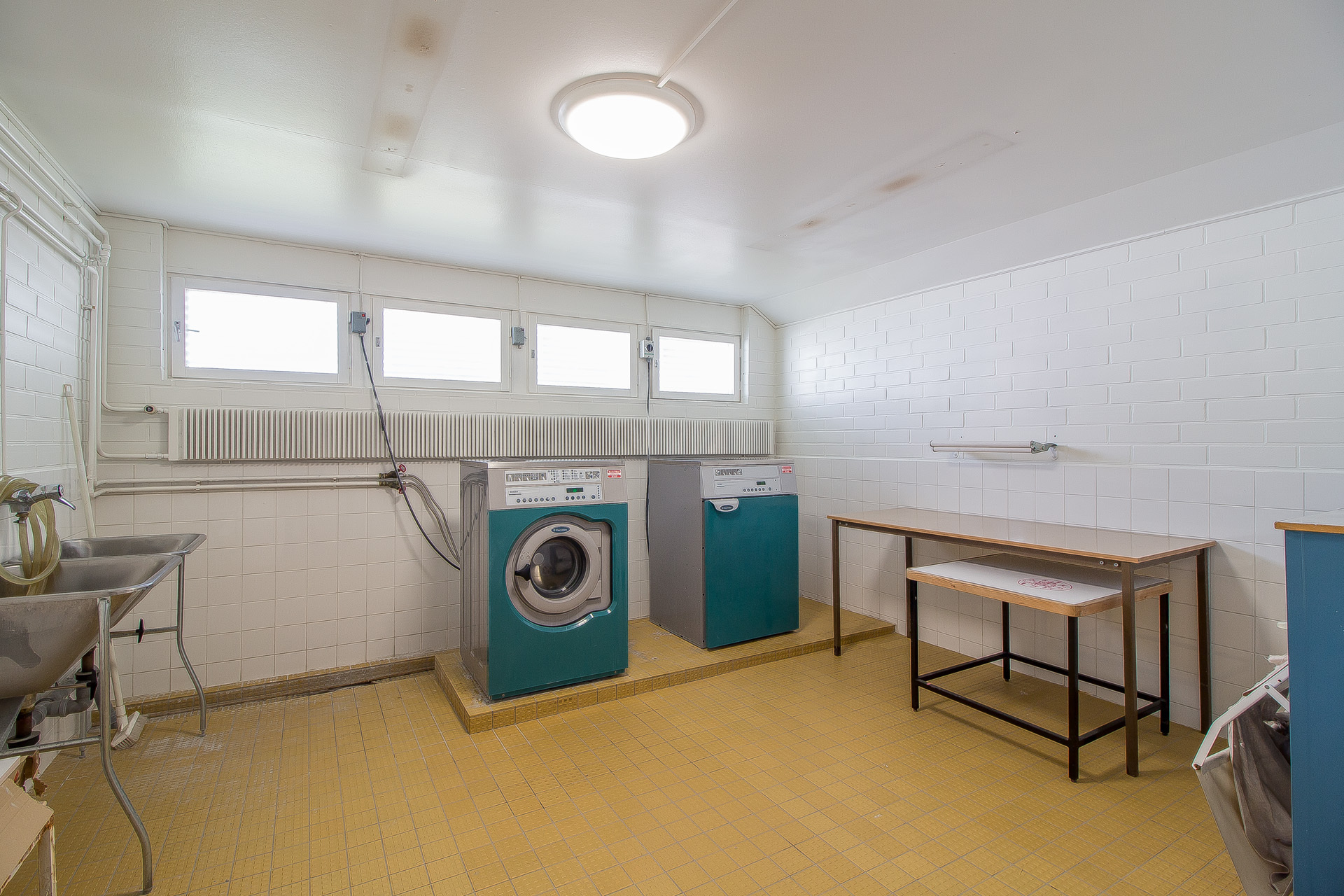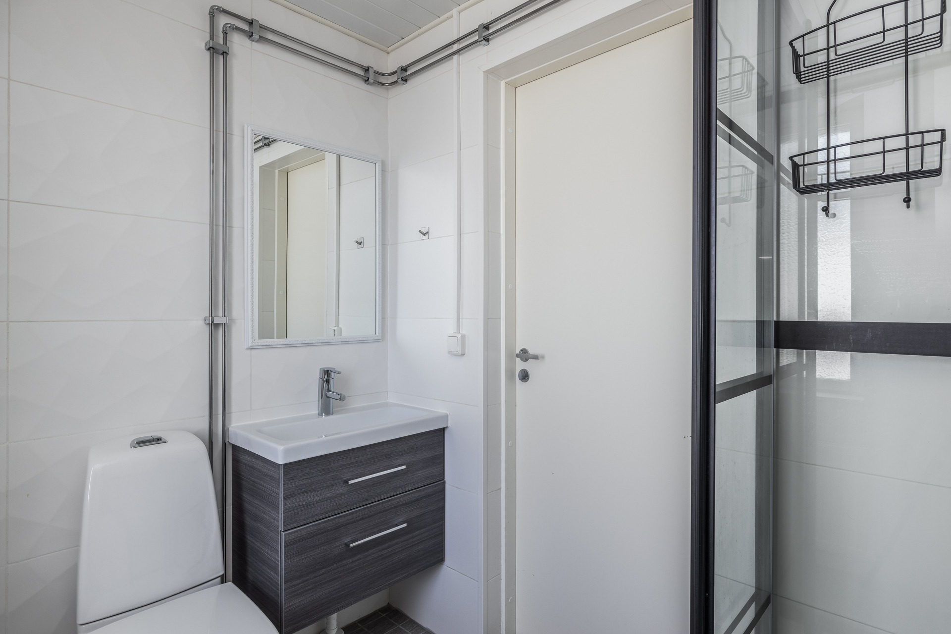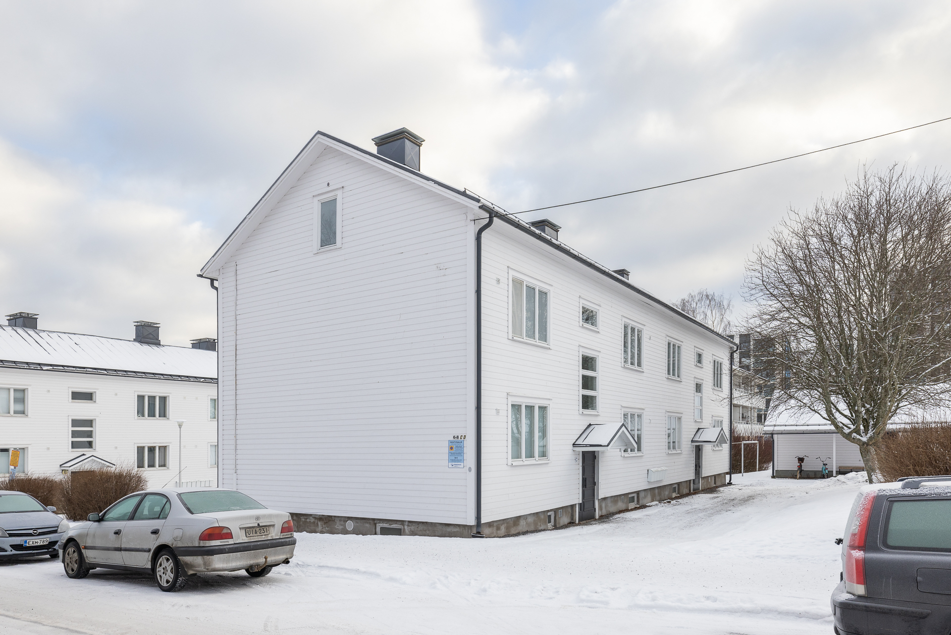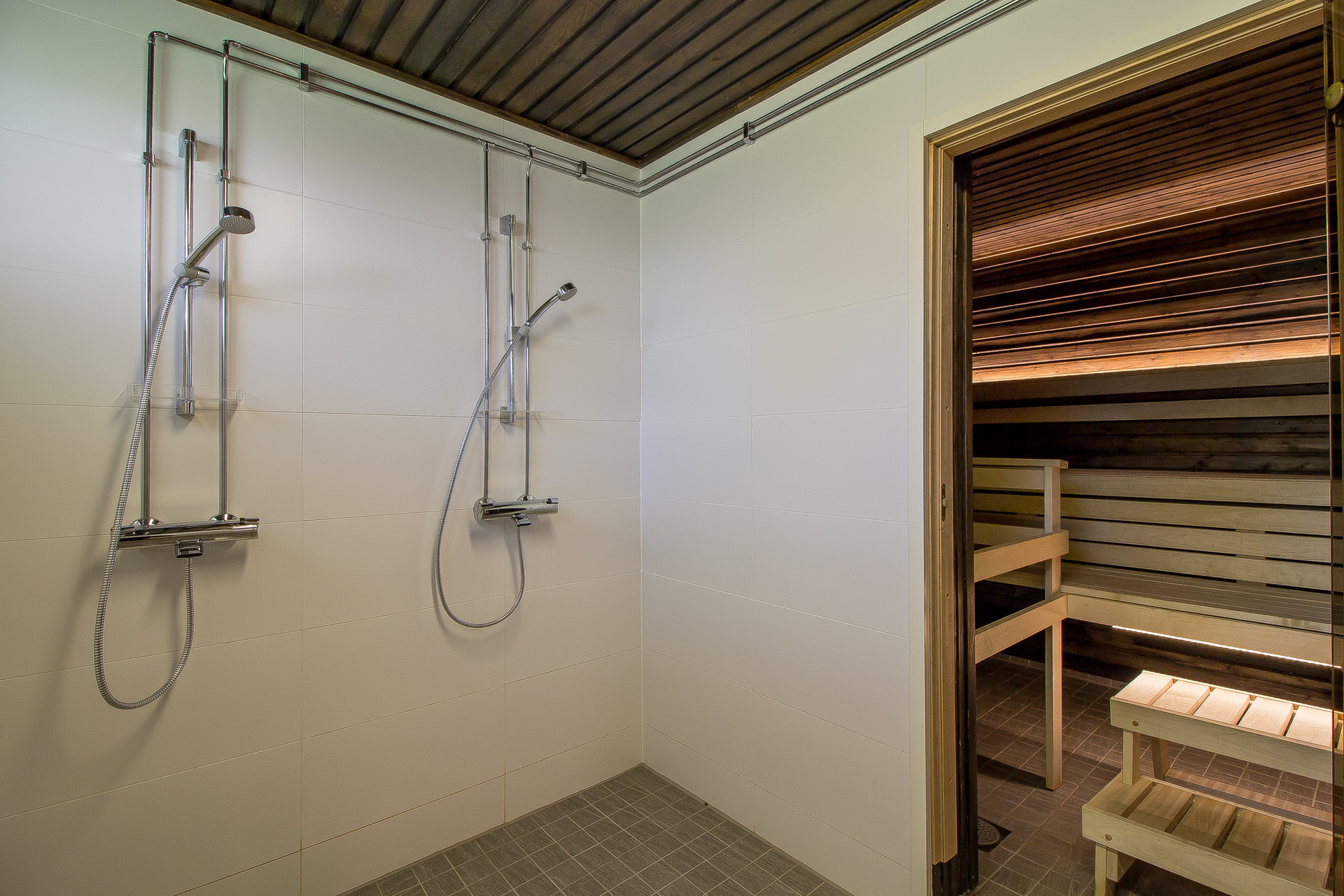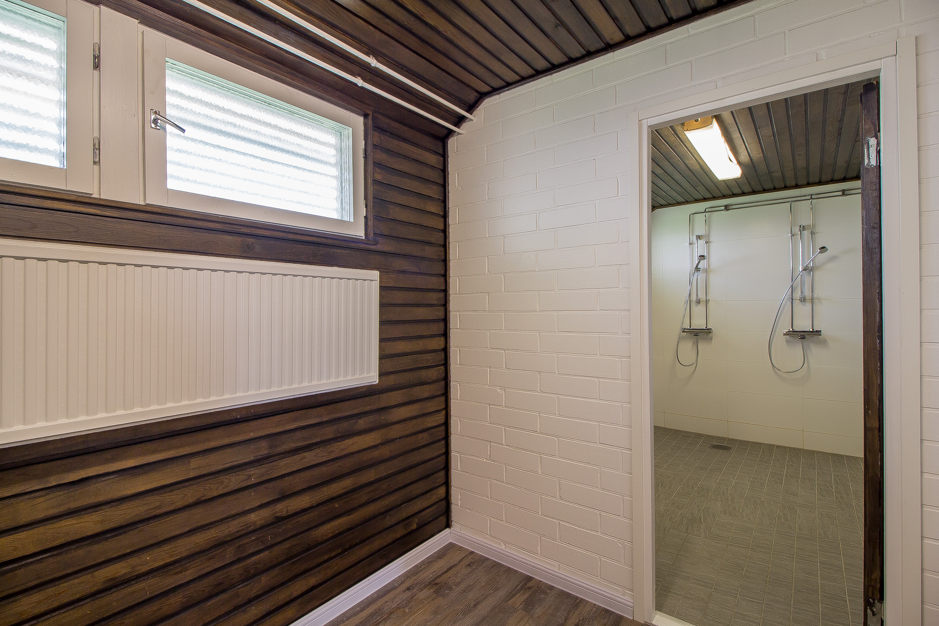 I den separata gårdsbyggnaden finns bostadsbolagets fina bastuavdelning och tvättstuga.