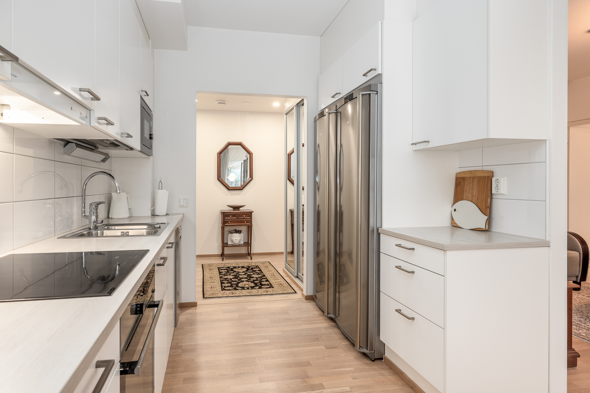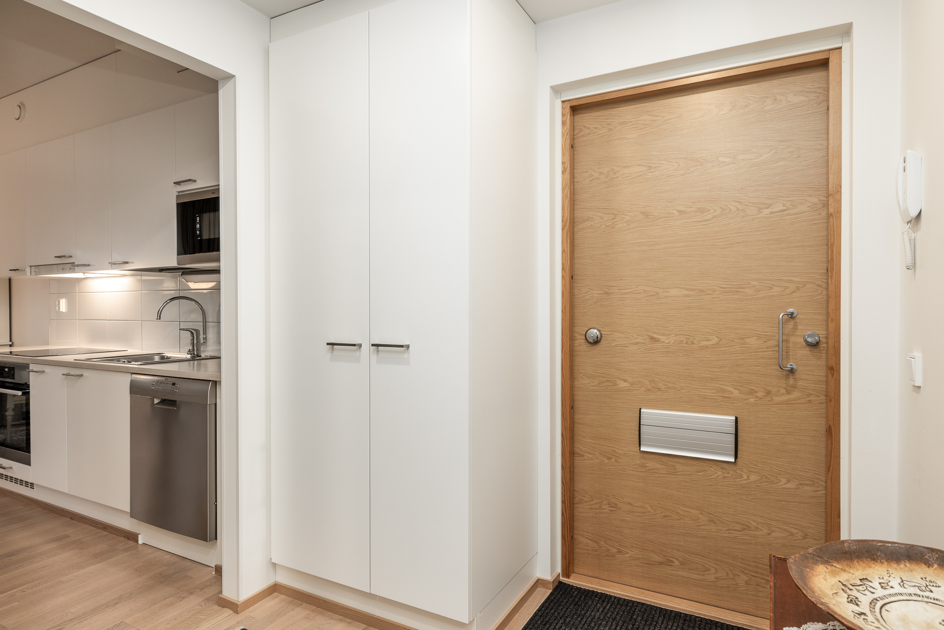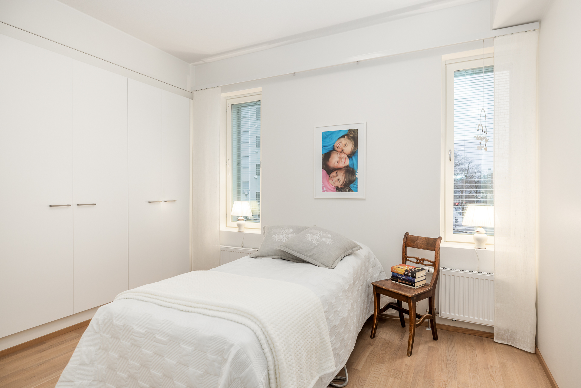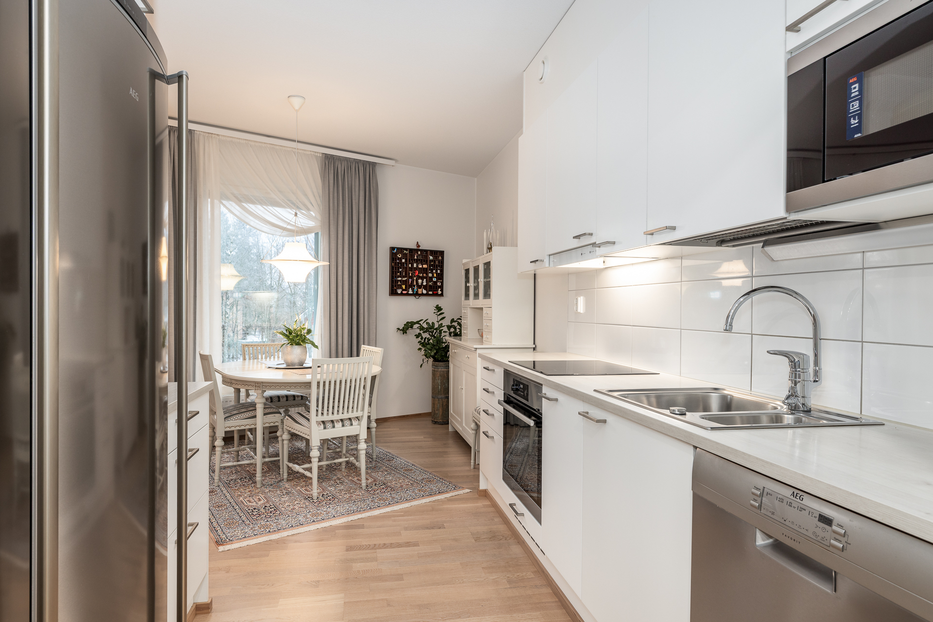 Väldigt ljus, hemtrevlig och välhållen lägenhet med två sovrum, vardagsrum, kök, stort badrum och egen bastu samt en inglasad balkong mot sydväst med fria utsikter. Gott om förvaringsutrymme och i det ena sovrummet finns även ett praktiskt klädrum.