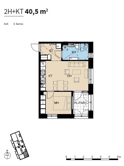 Lägenheten har ljust, öppet vardagsrum och kök, rymligt badrum, skilt sovrum och en trivsam halvvarm balkong, som stora delar av året fungerar som ett extra rum. Till varje lägenhet hör ett källarförråd.