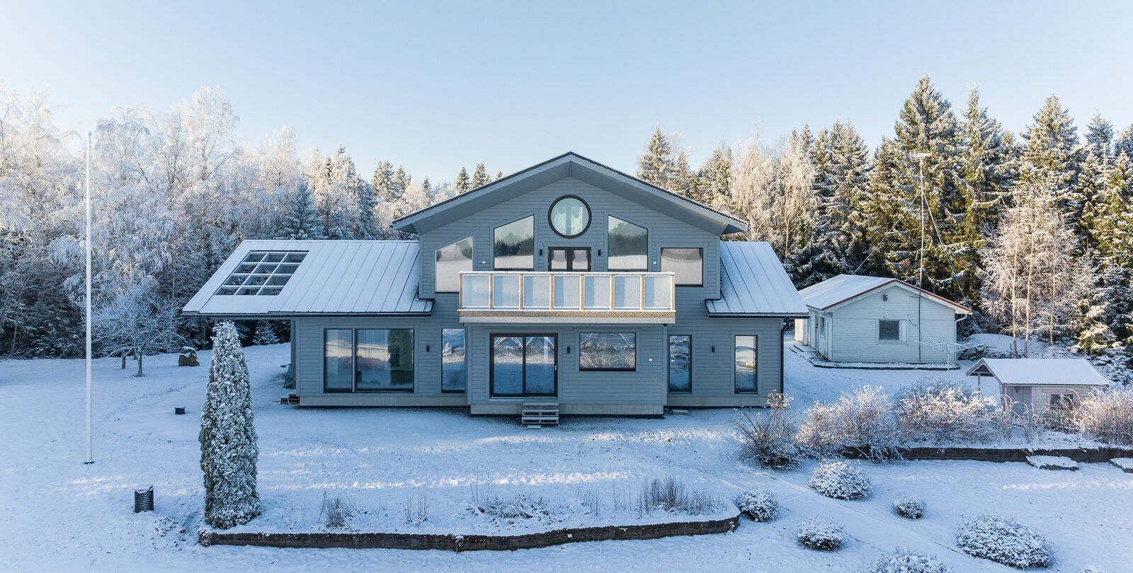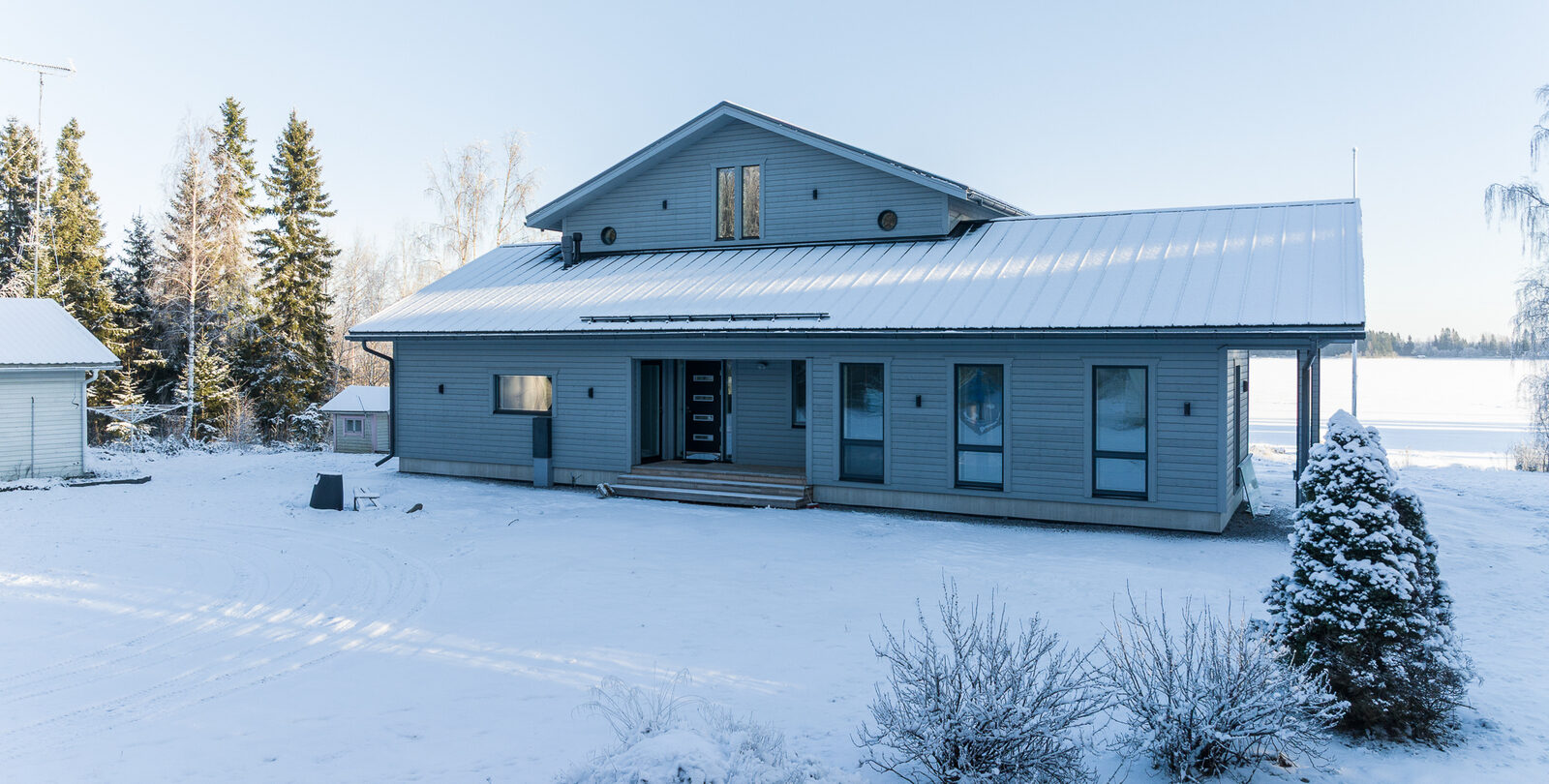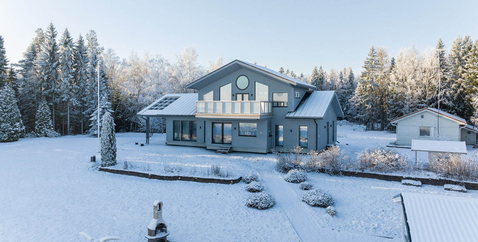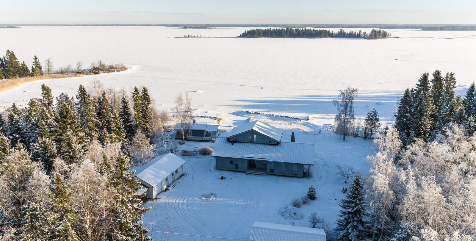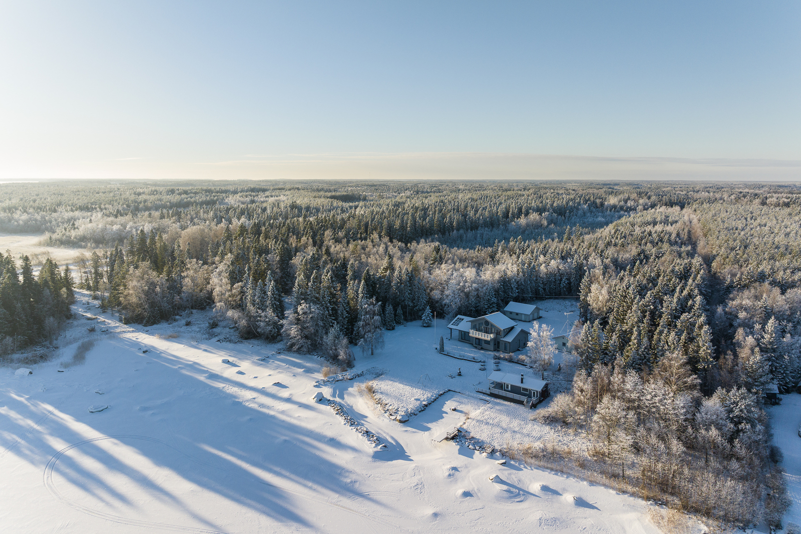 Fin helhet med ett stort och ståtligt nytt egnahemshus, rymlig strandbastu byggnad, varm garagebyggnad med plats för två bilar, separat ekonomibyggnad med hobbyutrymme, förvaring, garage och biltak. Stor strandtomt med egen ca 100m lång strandlinje och egen sandstrand och muddrad strand.
