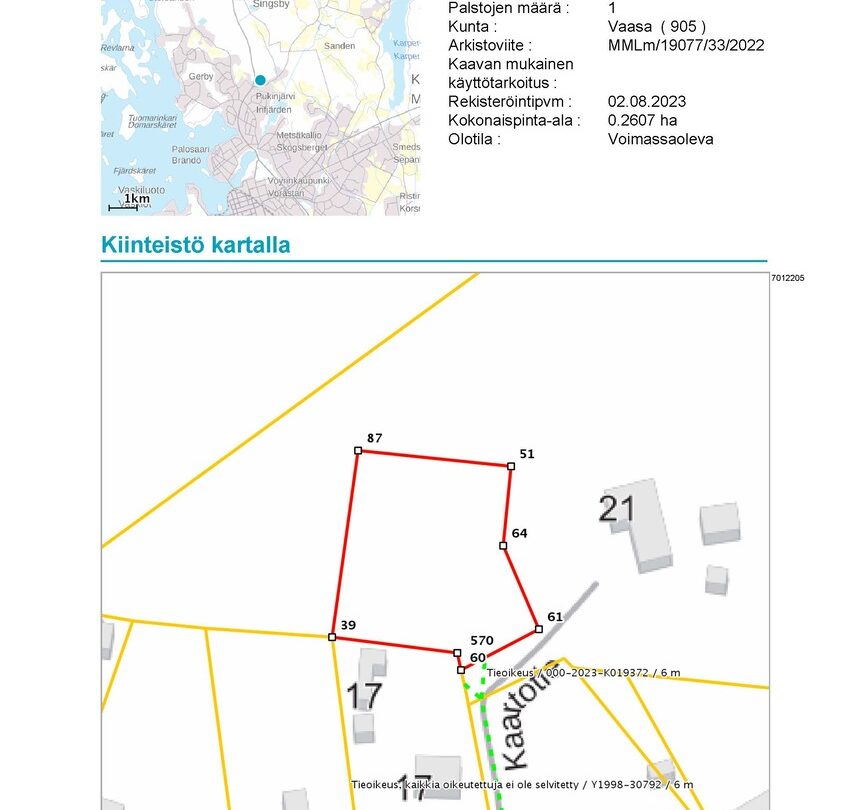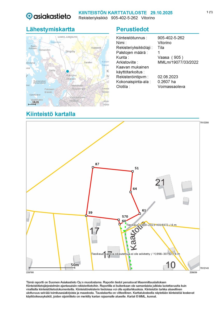 En hög och fin egnahemshustomt beläget på naturskönt ställe i Gerby, intill Singsbyvägen. Kort och snabb bilväg till Vasa centrum och matbutik, daghem samt skolor finns nära till på andra sidan Alskatvägen. Bygglov för byggande av ett egnahemshus och en ekonomibyggnad är beviljat. El-, vatten- och avloppsledningar finns på området.