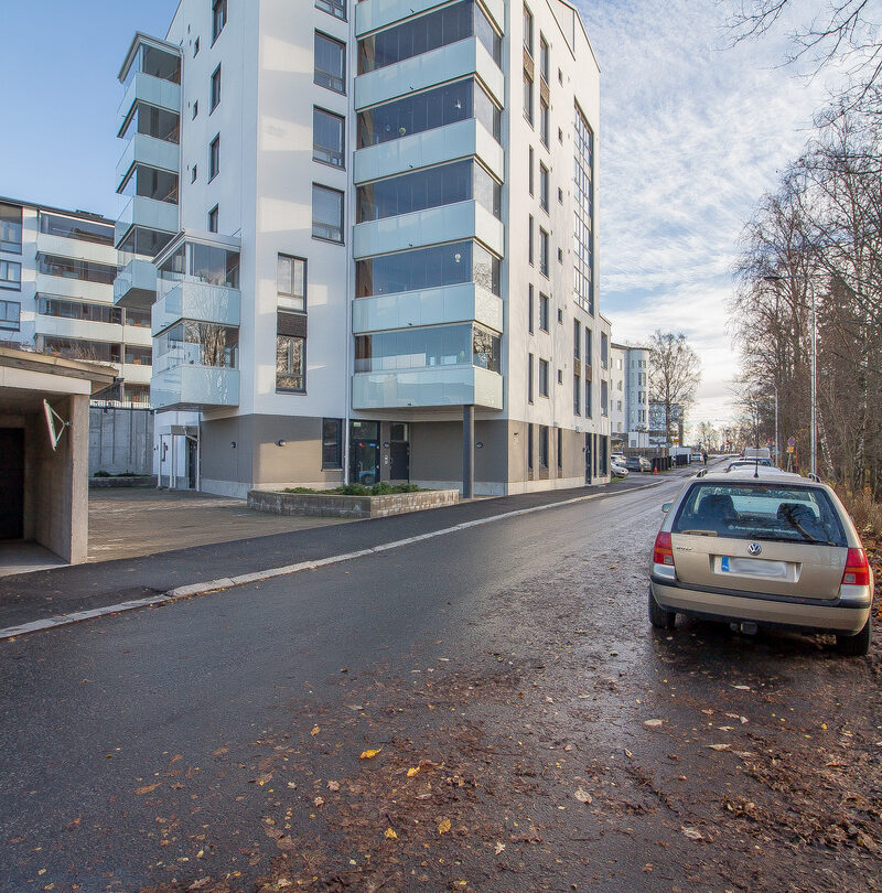 En bilhallsplats med laddstation för elbil, säljs skilt på egna aktier, Skuldfritt pris 20.000 euro. Till bilhallen under huset kommer man behändigt direkt med hissen.